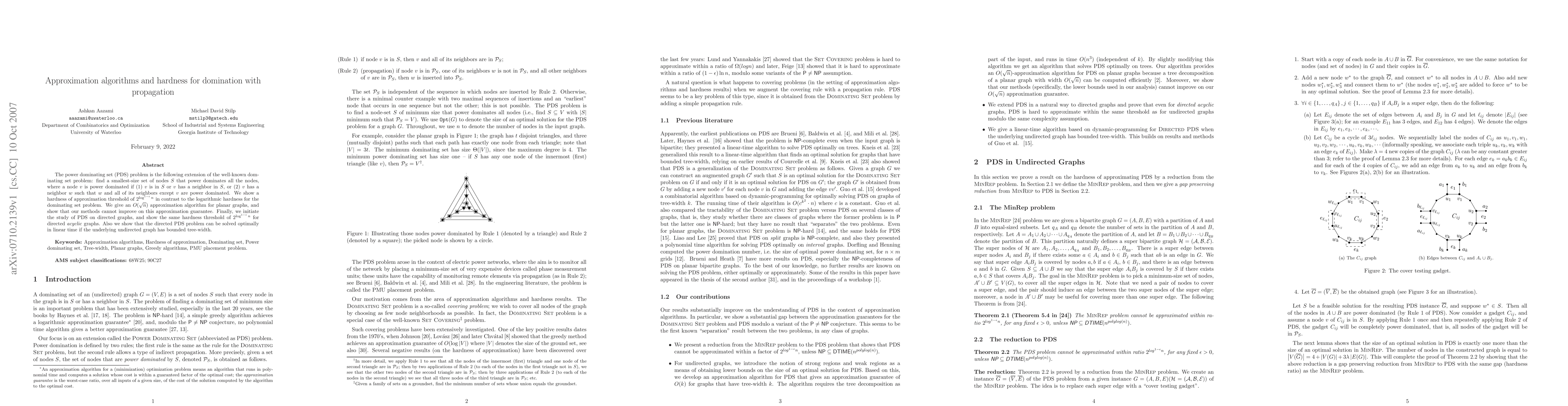 This work contributes to the understanding of approximation algorithms for PDS, extends the problem to directed graphs, and provides efficient solutions for graphs with bounded tree-width, impacting power system observability and related problems.