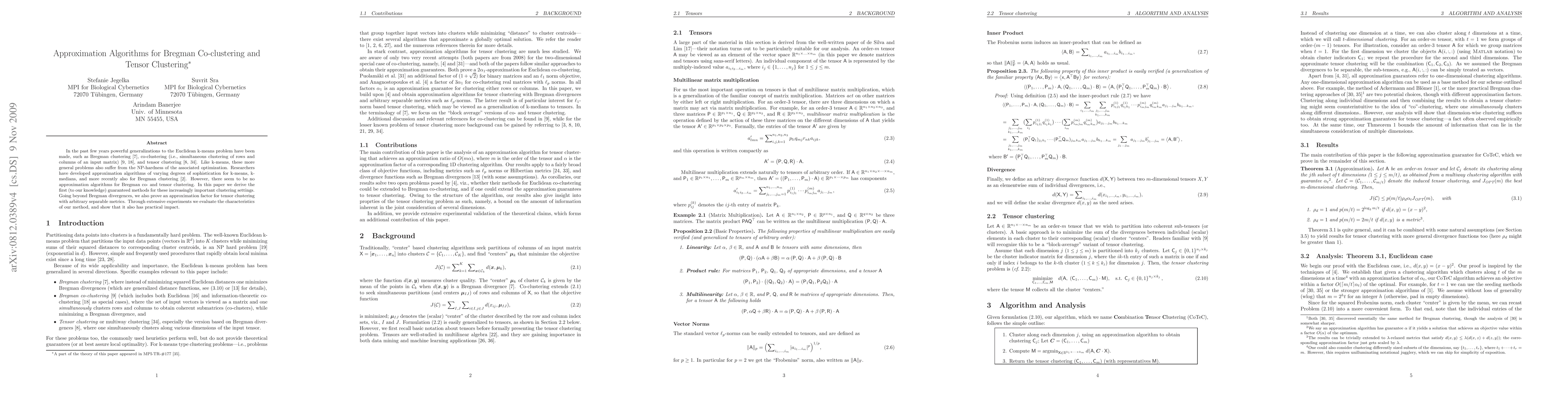 This paper introduces the first approximation algorithms for Bregman co-clustering and tensor clustering, addressing their NP-hard optimization problems. It also proves an approximation factor for tensor clustering with arbitrary separable metrics and demonstrates practical effectiveness through experiments.