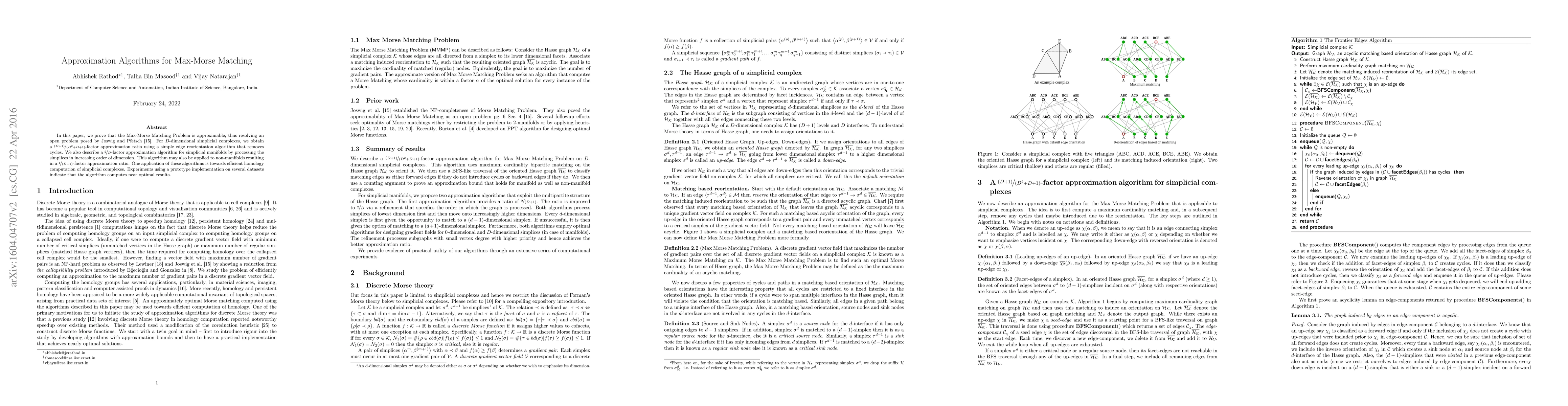 This paper resolves the open problem of the approximability of the Max-Morse Matching Problem, presenting two algorithms with specific approximation ratios for simplicial complexes and manifolds. The algorithms facilitate efficient homology computation and show promising results in prototype experiments.