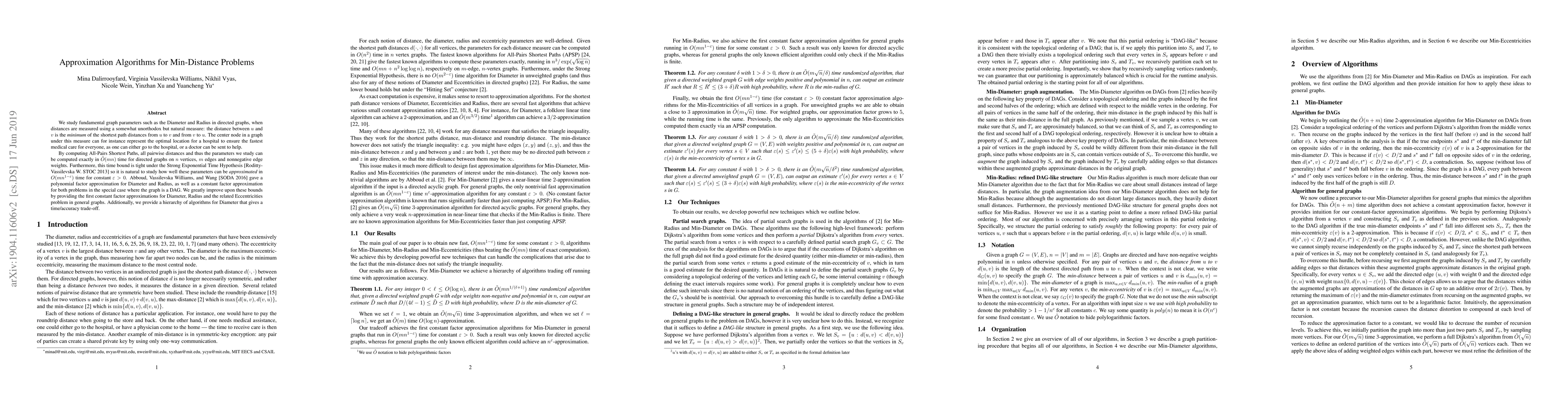 This paper studies the Diameter and Radius in directed graphs using a unique distance measure. It presents the first constant factor approximations for these parameters and related Eccentricities in general graphs, improving upon previous polynomial and special case approximations. It also introduces a hierarchy of algorithms for Diameter with a time/accuracy trade-off.