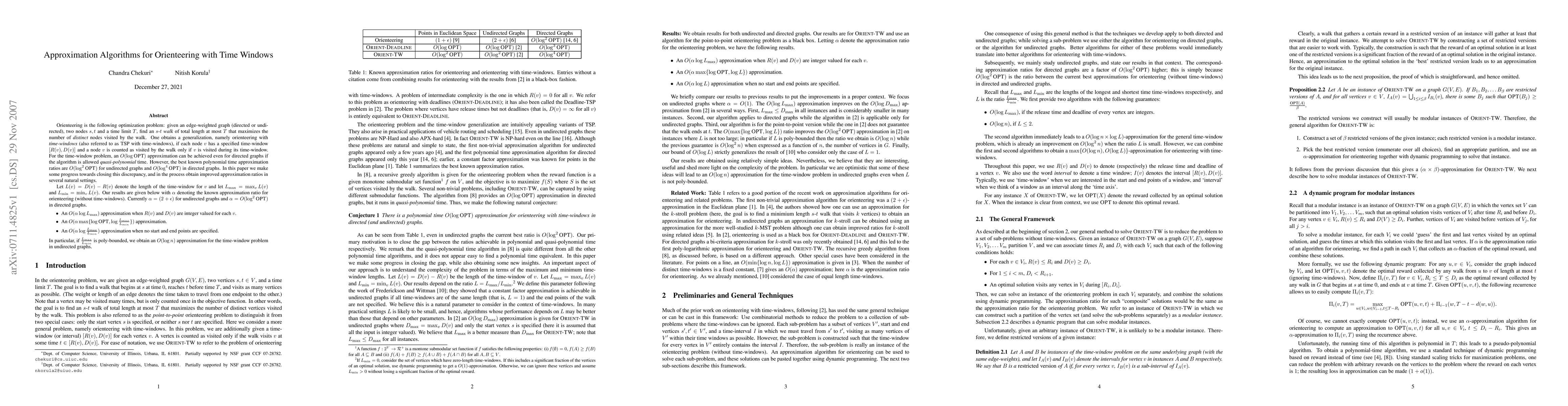 Orienteering is the following optimization problem: given an edge-weighted graph (directed or undirected), two nodes s,t and a time limit T, find an s-t walk of total length at most T that maximizes the number of distinct nodes visited by the walk. One obtains a generalization, namely orienteering with time-windows (also referred to as TSP with time-windows), if each node v has a specified time-window [R(v), D(v)] and a node v is counted as visited by the walk only if v is visited during its time-window. For the time-window problem, an O(\log \opt) approximation can be achieved even for directed graphs if the algorithm is allowed quasi-polynomial time. However, the best known polynomial time approximation ratios are O(\log^2 \opt) for undirected graphs and O(\log^4 \opt) in directed graphs. In this paper we make some progress towards closing this discrepancy, and in the process obtain improved approximation ratios in several natural settings. Let L(v) = D(v) - R(v) denote the length of the time-window for v and let \lmax = \max_v L(v) and \lmin = \min_v L(v). Our results are given below with \alpha denoting the known approximation ratio for orienteering (without time-windows). Currently \alpha = (2+\eps) for undirected graphs and \alpha = O(\log^2 \opt) in directed graphs. 1. An O(\alpha \log \lmax) approximation when R(v) and D(v) are integer valued for each v. 2. An O(\alpha \max{\log \opt, \log \frac{\lmax}{\lmin}}) approximation. 3. An O(\alpha \log \frac{\lmax}{\lmin}) approximation when no start and end points are specified. In particular, if \frac{\lmax}{\lmin} is poly-bounded, we obtain an O(\log n) approximation for the time-window problem in undirected graphs.
