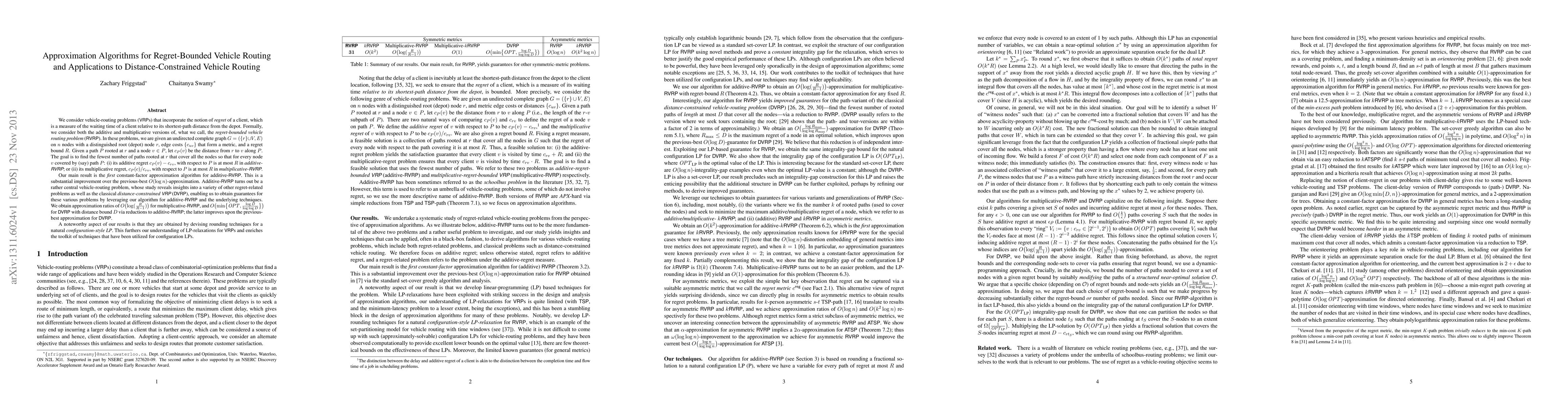 We consider vehicle-routing problems (VRPs) that incorporate the notion of {\em regret} of a client, which is a measure of the waiting time of a client relative to its shortest-path distance from the depot. Formally, we consider both the additive and multiplicative versions of, what we call, the {\em regret-bounded vehicle routing problem} (RVRP). In these problems, we are given an undirected complete graph $G=(\{r\}\cup V,E)$ on $n$ nodes with a distinguished root (depot) node $r$, edge costs $\{c_{uv}\}$ that form a metric, and a regret bound $R$. Given a path $P$ rooted at $r$ and a node $v\in P$, let $c_P(v)$ be the distance from $r$ to $v$ along $P$. The goal is to find the fewest number of paths rooted at $r$ that cover all the nodes so that for every node $v$ covered by (say) path $P$: (i) its additive regret $c_P(v)-c_{rv}$, with respect to $P$ is at most $R$ in {\em additive-RVRP}; or (ii) its multiplicative regret, $c_P(c)/c_{rv}$, with respect to $P$ is at most $R$ in {\em multiplicative-RVRP}. Our main result is the {\em first} constant-factor approximation algorithm for additive-RVRP by devising rounding techniques for a natural {\em configuration-style LP}. This is a substantial improvement over the previous-best $O(\log n)$-approximation. Additive-RVRP turns out be a rather central vehicle-routing problem, whose study reveals insights into a variety of other regret-related problems as well as the classical {\em distance-constrained VRP} ({DVRP}). We obtain approximation ratios of $O\bigl(\log(\frac{R}{R-1})\bigr)$ for multiplicative-RVRP, and $O\bigl(\min\bigl\{\mathit{OPT},\frac{\log D}{\log\log D}\bigr\}\bigr)$ for DVRP with distance bound $D$ via reductions to additive-RVRP; the latter improves upon the previous-best approximation for DVRP.