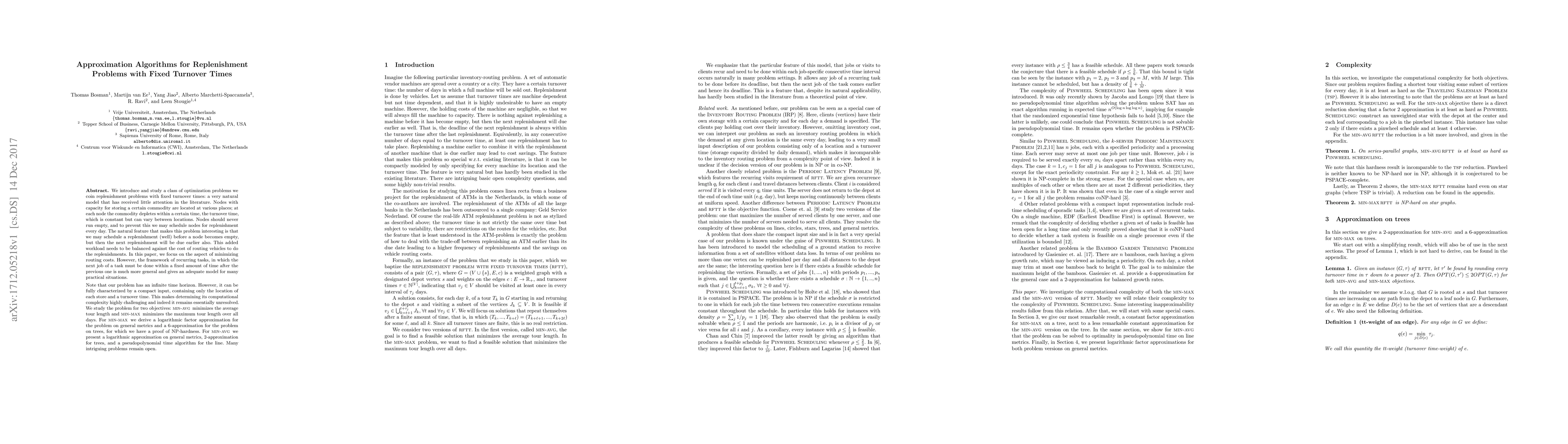 This paper develops approximation algorithms for replenishment problems with fixed turnover times, aiming to minimize routing costs while addressing the challenge of balancing early replenishments against vehicle routing expenses.