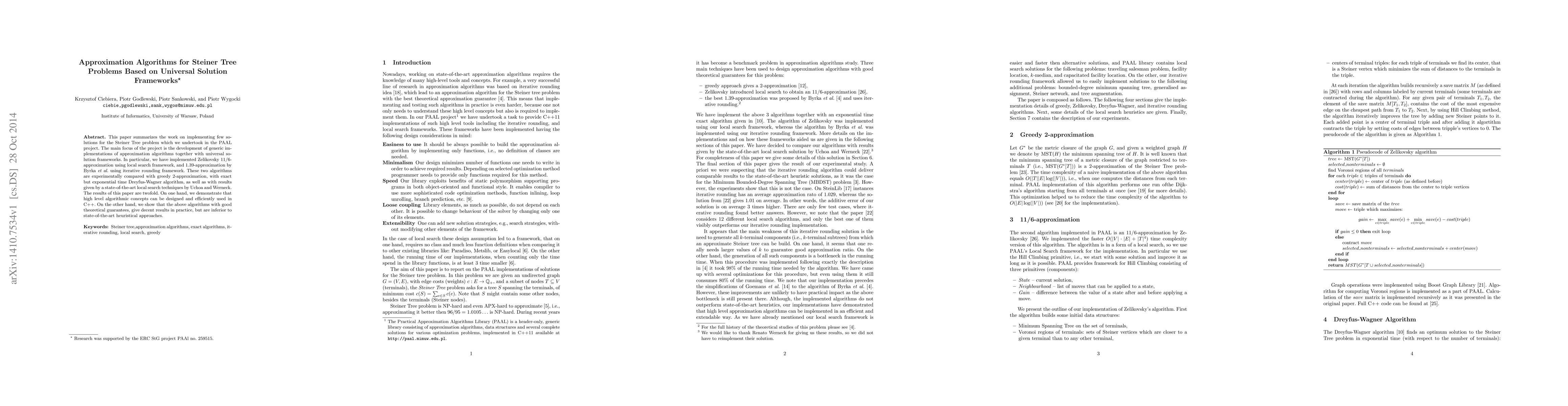 Researchers developed approximation algorithms for Steiner Tree problems using universal solution frameworks, achieving average approximation ratios of 11/6 and 1.39, which were compared to state-of-the-art local search techniques.