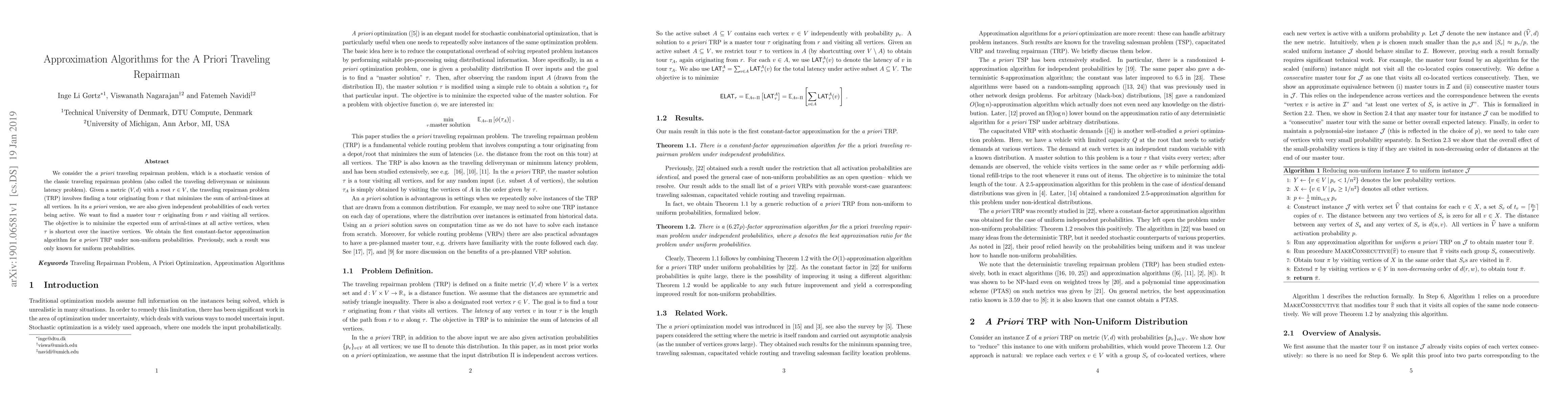 Researchers developed a constant-factor approximation algorithm for the a priori traveling repairman problem under non-uniform probabilities, improving upon previous results that only applied to uniform probabilities.