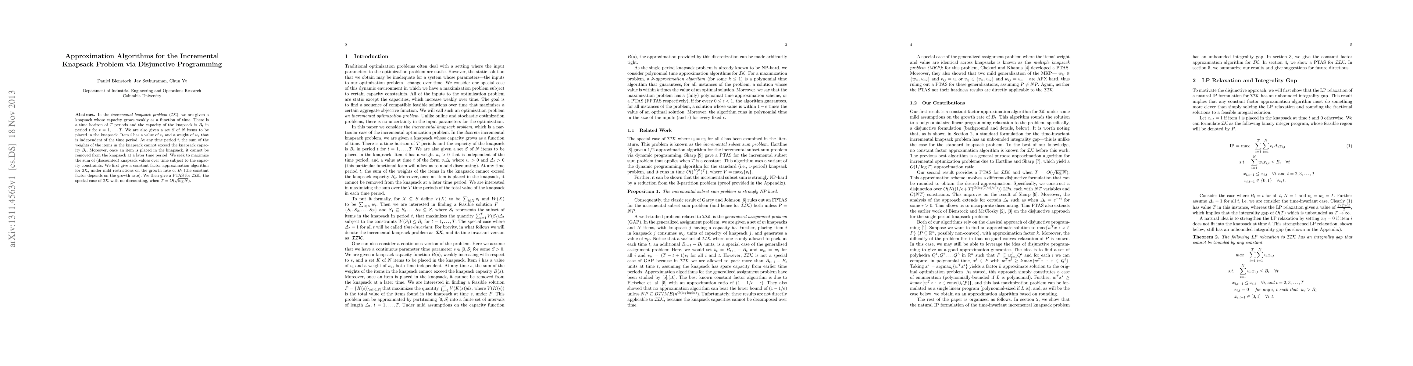 This paper presents approximation algorithms for the incremental knapsack problem ($\IK$), where knapsack capacity increases over time. It provides a constant factor approximation under mild growth rate restrictions and a PTAS for the undiscounted special case ($\IIK$) when the time horizon is polynomial in the logarithm of the number of items.