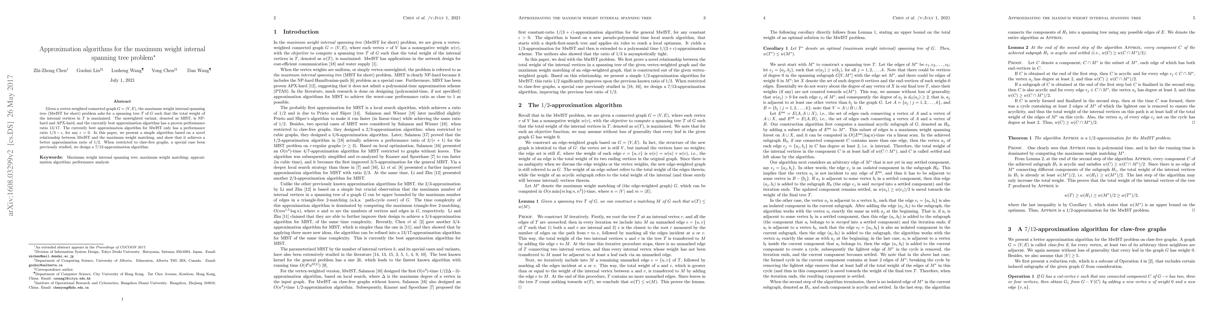 This paper proposes a new approximation algorithm for the maximum weight internal spanning tree (MwIST) problem, achieving a better approximation ratio of $1/2$. For claw-free graphs, it presents a $7/12$-approximation algorithm, improving on previous approaches.