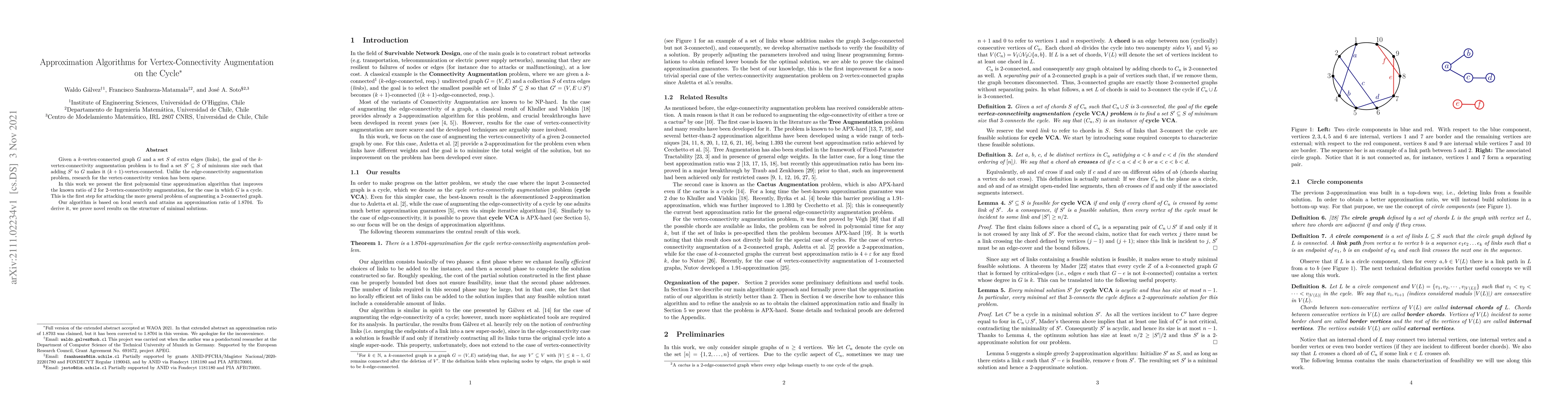 Researchers developed a polynomial-time approximation algorithm to augment the vertex-connectivity of a cycle graph, improving the known ratio for 2-vertex-connected augmentation from 2 to 1.8704.