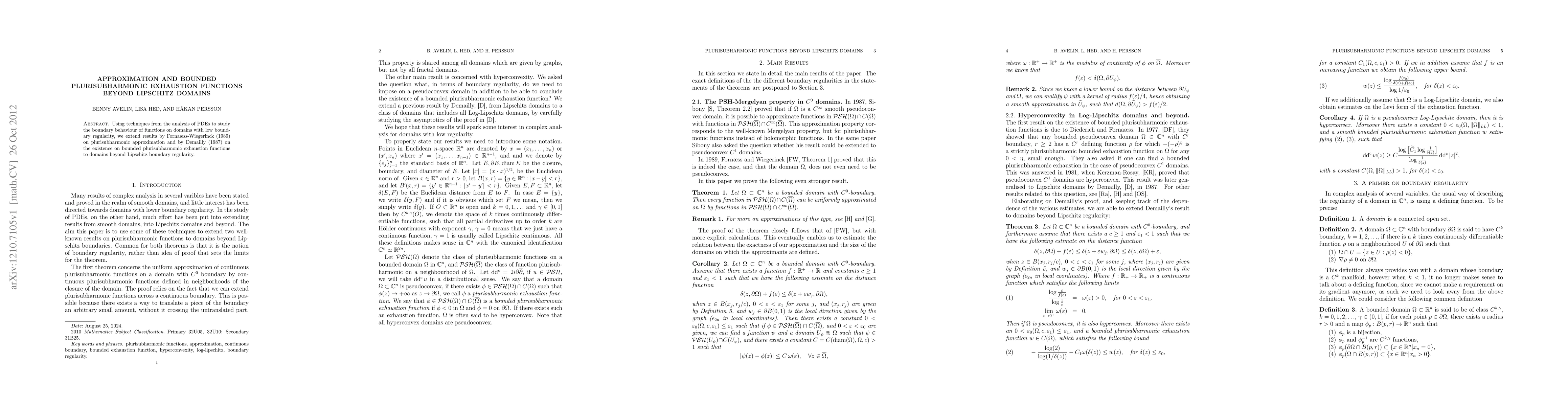 This paper extends previous results on plurisubharmonic approximation and bounded plurisubharmonic exhaustion functions to domains with lower boundary regularity than Lipschitz, utilizing advanced PDE analysis techniques. The findings build on foundational work by Forna\ae{}ss-Wiegerinck and Demailly.