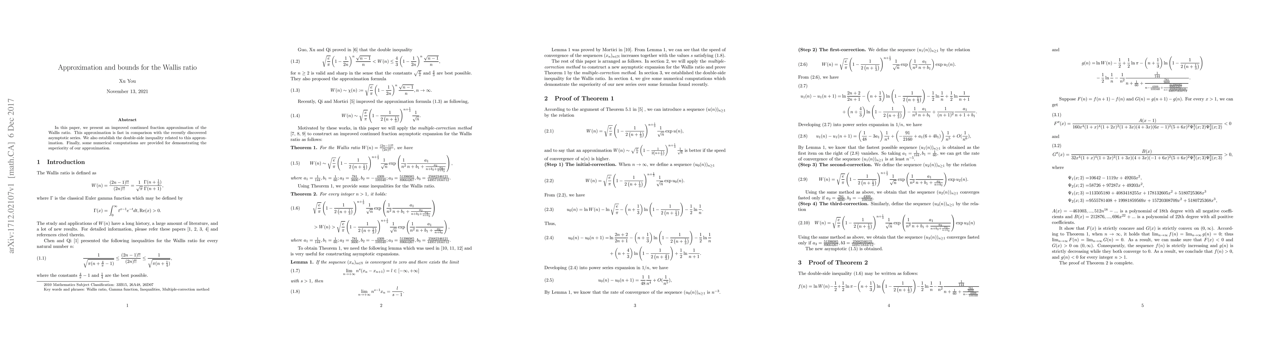 The paper presents a fast continued fraction approximation of the Wallis ratio, outperforming an existing asymptotic series, with a double-side inequality established for its accuracy.