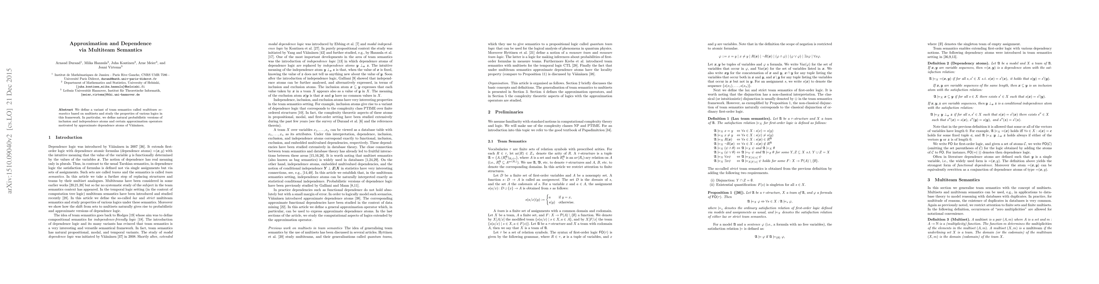 This paper introduces multiteam semantics, a variant of team semantics based on multisets, and explores the properties of logics within this framework. It also defines probabilistic versions of inclusion and independence, along with approximation operators inspired by Väänänen's approximate dependence atoms.