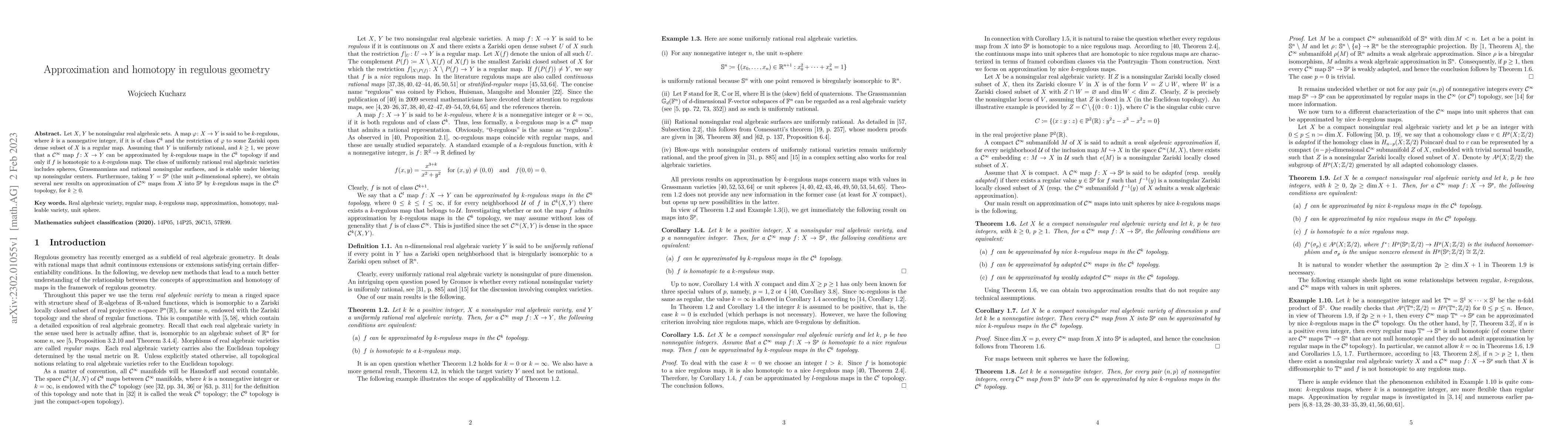 Let X, Y be nonsingular real algebraic sets. A map fi:X-->Y is said to be k-regulous, where k is a nonnegative integer, if it is of class C^k and the restriction of fi to some Zariski open dense subset of X is a regular map. Assuming that Y is uniformly rational, and k>0, we prove that a C^inf map f:X-->Y can be approximated by k-regulous maps in the C^k topology if and only if f is homotopic to a k-regulous map. The class of uniformly rational real algebraic varieties includes spheres, Grassmannians and real rational surfaces, and is stable under blowing up nonsingular centers. Furthermore, Taking Y=S^p (the unit p-dimensional sphere), we obtain several new results on approximation of C^inf maps from X into S^p by k-regulous maps in the C^k topology, for k nonnegative.