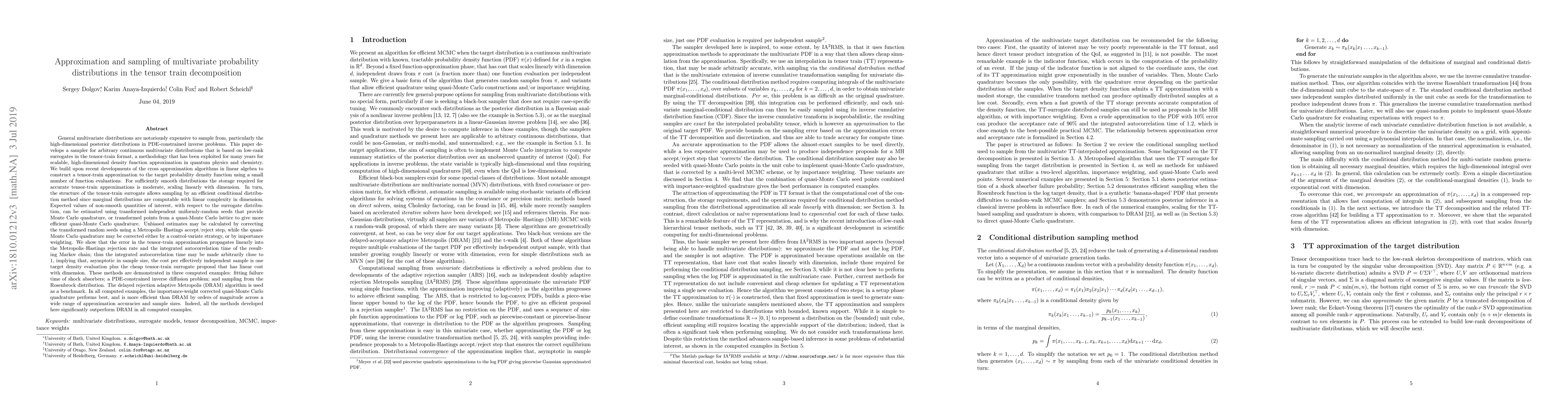 This paper introduces a new sampler for high-dimensional multivariate distributions based on tensor-train approximations, demonstrating efficient sampling and unbiased estimates via Metropolis-Hastings and quasi-Monte Carlo methods. The proposed methods outperform the benchmark delayed rejection adaptive Metropolis algorithm in various examples.