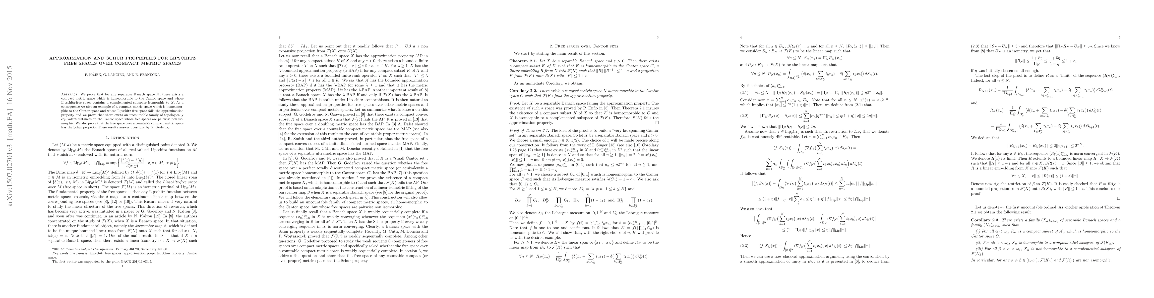 This paper demonstrates that for any separable Banach space $X$, there is a compact metric space homeomorphic to the Cantor space whose Lipschitz-free space contains a complemented subspace isomorphic to $X$. It also shows that such spaces can fail the approximation property and proves the Schur property for the free space over countable compact metric spaces.