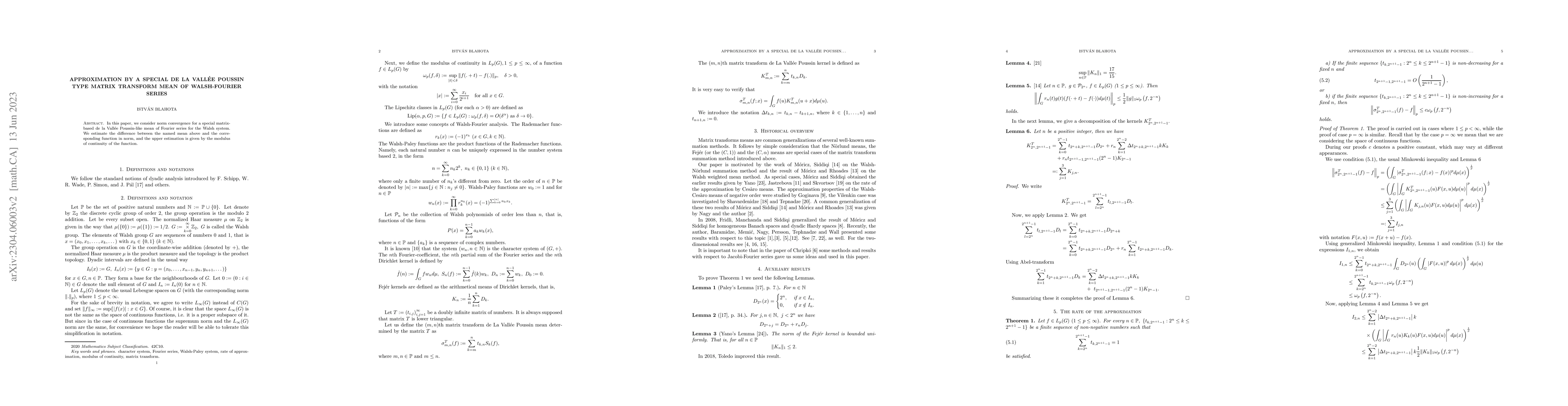 This paper investigates norm convergence for a matrix-based de la Vallée Poussin-like mean of Walsh-Fourier series, estimating the difference between this mean and the original function using the modulus of continuity.
