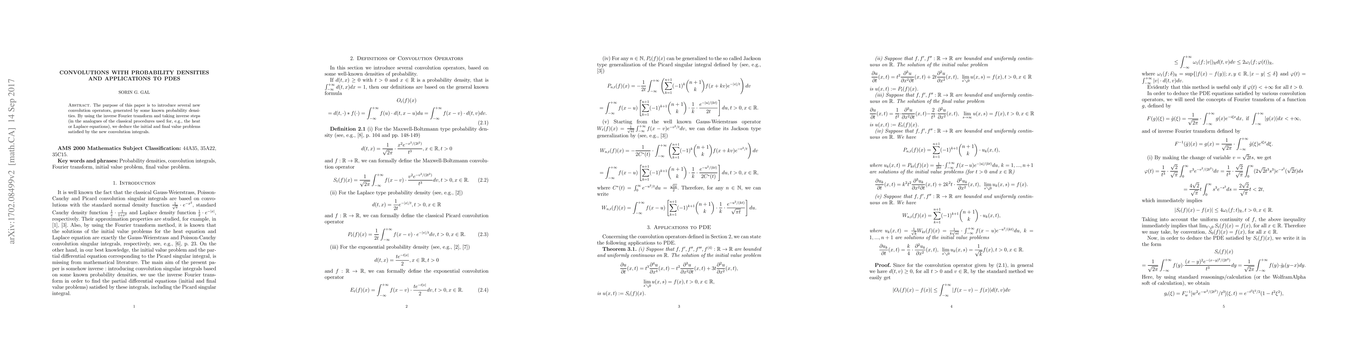 The purpose of this paper is to introduce several new convolution operators, generated by some known probability densities. By using the inverse Fourier transform and taking inverse steps (in the analogues of the classical procedures used for, e.g., the heat or Laplace equations), we deduce the initial and final value problems satisfied by the new convolution integrals.