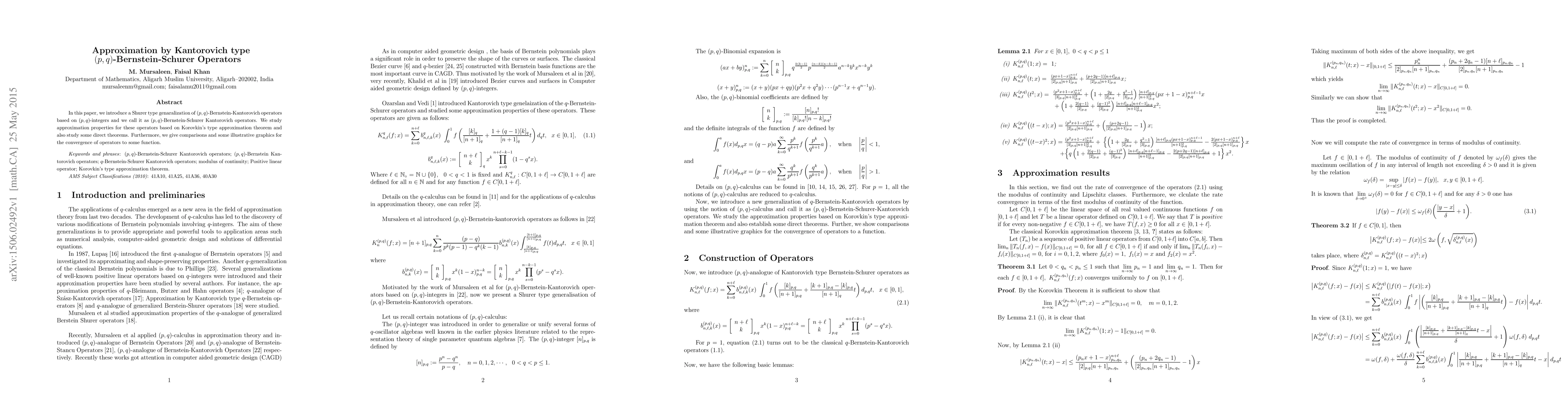The paper introduces (p,q)-Bernstein-Schurer Kantorovich operators and develops their approximation properties, including direct theorems, rate of convergence, and local approximation results.