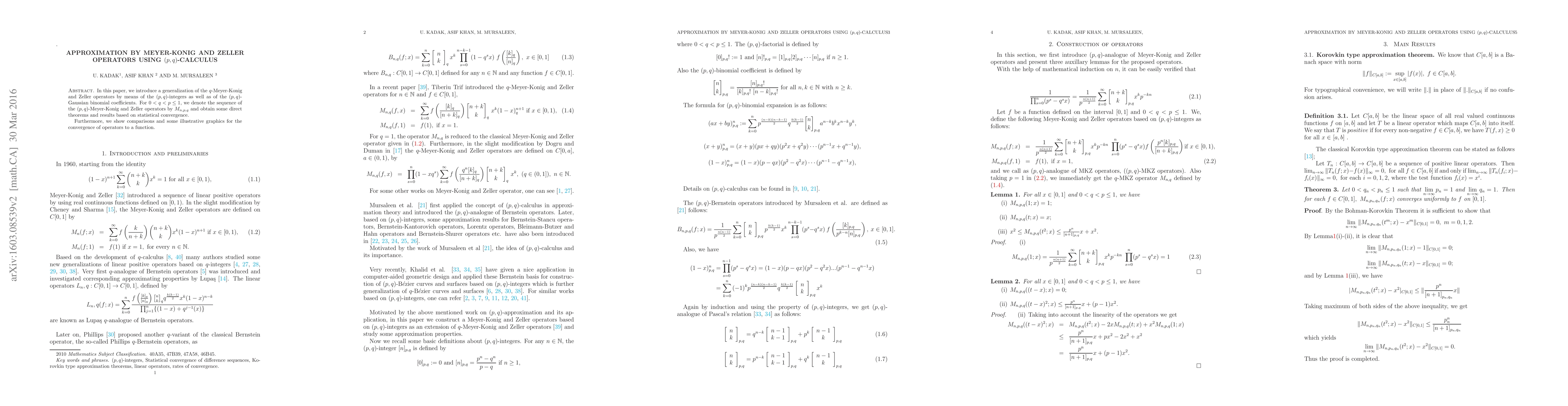 This paper generalizes $q$-Meyer-Konig and Zeller operators using $(p,q)$-calculus, demonstrating statistical convergence and direct theorems for operators $M_{n,p,q}$. It also provides comparative analysis and visual illustrations of operator convergence.
