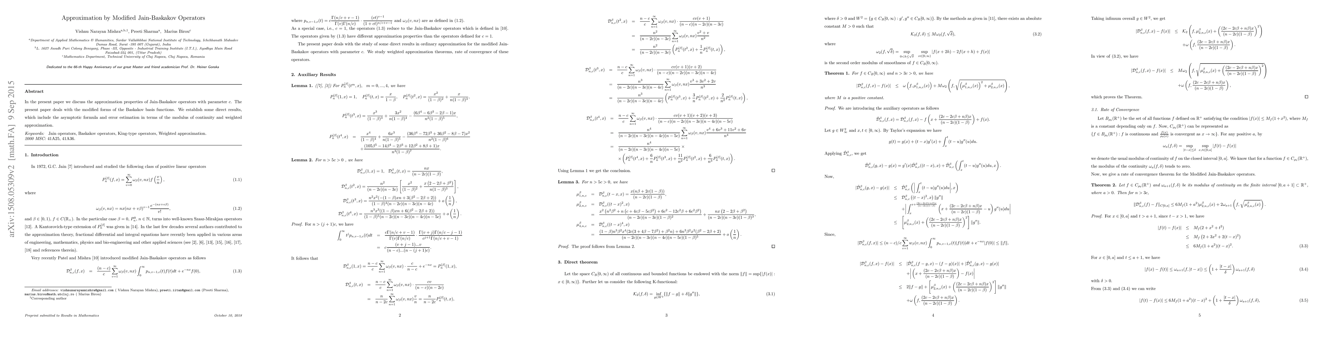 This paper investigates the approximation properties of modified Jain-Baskakov operators with parameter c, focusing on new forms of the Baskakov basis functions. It provides direct results including an asymptotic formula and error estimation linked to the modulus of continuity and weighted approximation.