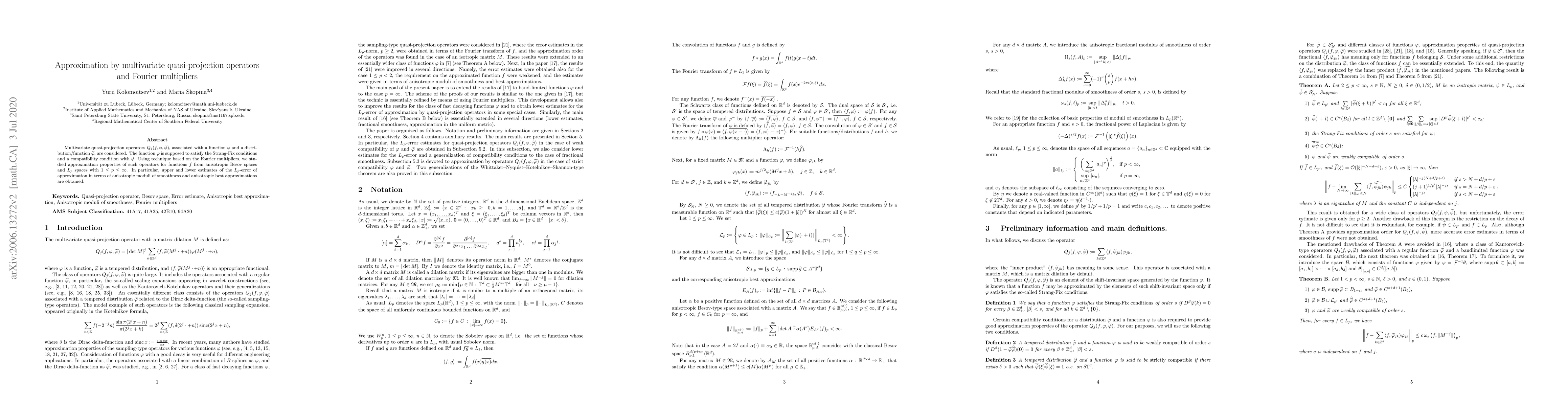 This paper investigates multivariate quasi-projection operators $Q_j(f,\varphi,\widetilde{\varphi})$ under the Strang-Fix and compatibility conditions. It employs Fourier multiplier techniques to study their approximation properties for functions in anisotropic Besov and $L_p$ spaces, deriving upper and lower estimates of $L_p$-approximation errors.