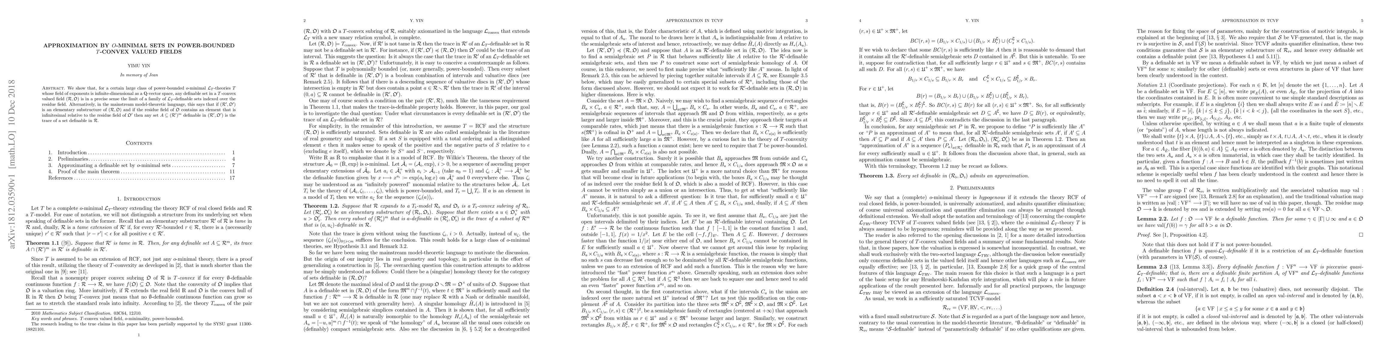 This paper demonstrates that definable sets in certain $o$-minimal $T$-convex valued fields can be approximated by $\mathcal{L}_T$-definable sets indexed over the residue field, reflecting a limit relationship in model-theoretic terms. It also establishes that definable sets in elementary substructures trace back to sets definable in the larger field.