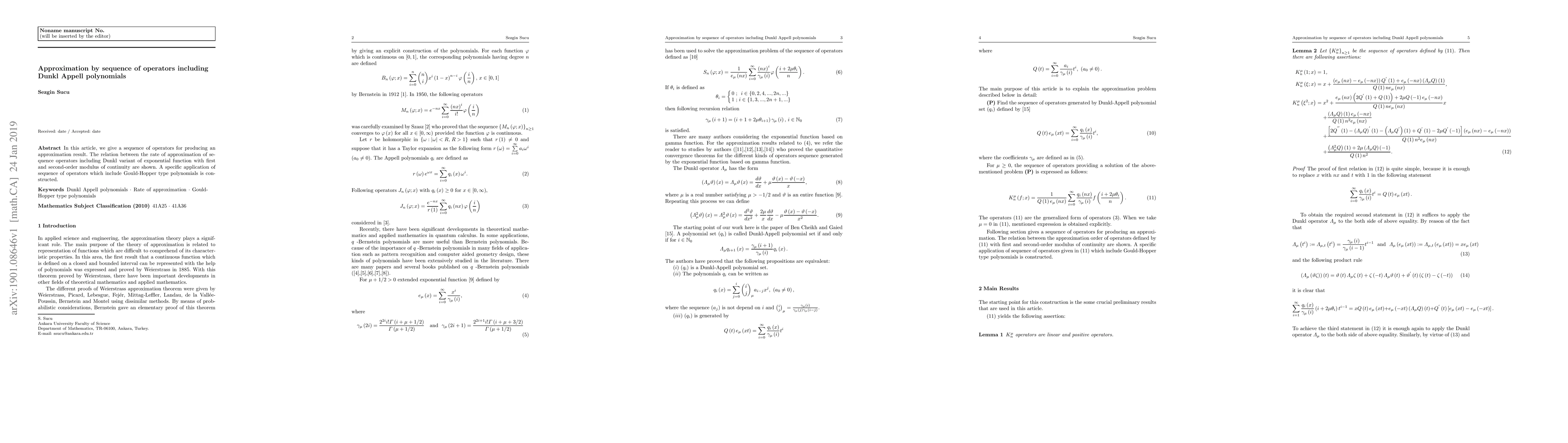 In this article, we give a sequence of operators for producing an approximation result. The relation between the rate of approximation of sequence operators including Dunkl variant of exponential function with first and second-order modulus of continuity are shown. A specific application of sequence of operators which include Gould-Hopper type polynomials is constructed.