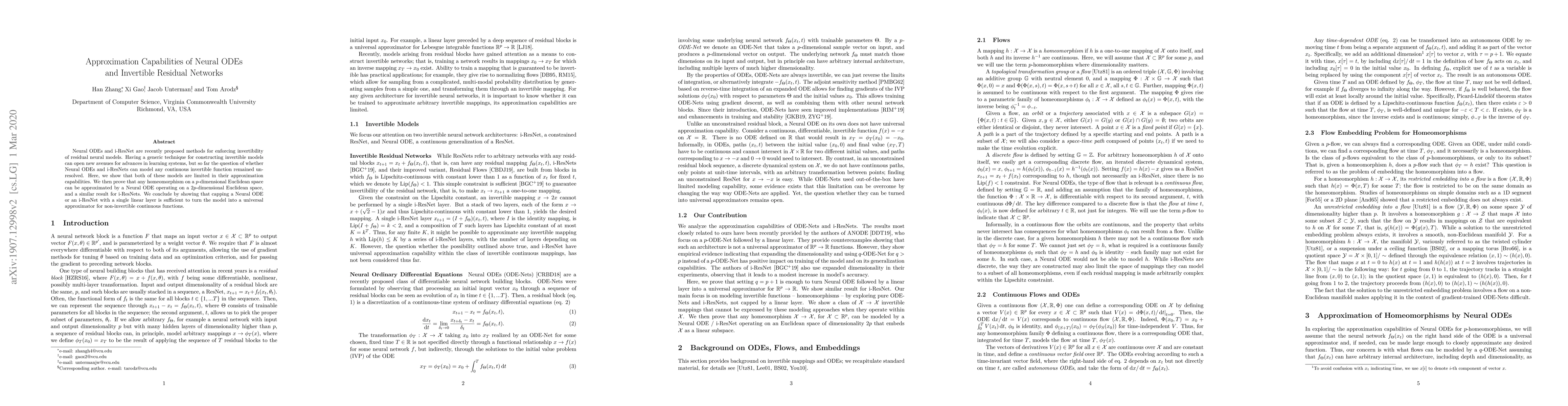 This paper investigates the approximation capabilities of Neural ODEs and i-ResNets, revealing their limitations in modeling continuous invertible functions. It proves that both can approximate any homeomorphism with appropriate dimensions, but adding a linear layer transforms them into universal approximators for non-invertible functions.