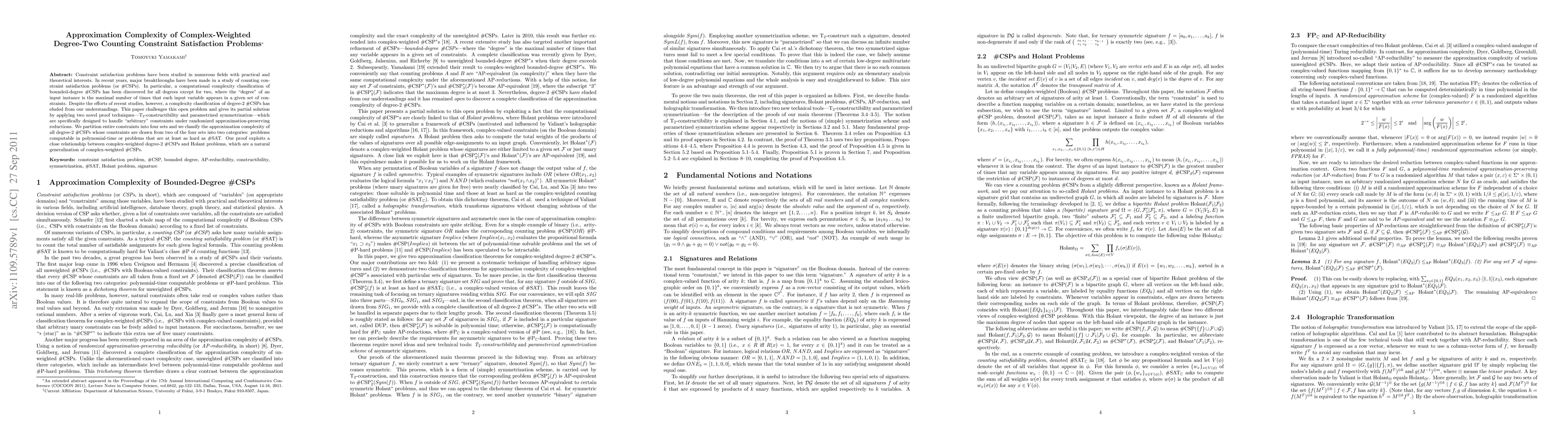 This research paper addresses the complexity classification of degree-two counting constraint satisfaction problems (#CSPs), introducing novel techniques for approximation. It classifies degree-2 #CSPs based on constraint sets into polynomial-time computable problems or those as hard as #SAT, leveraging connections to Holant problems.