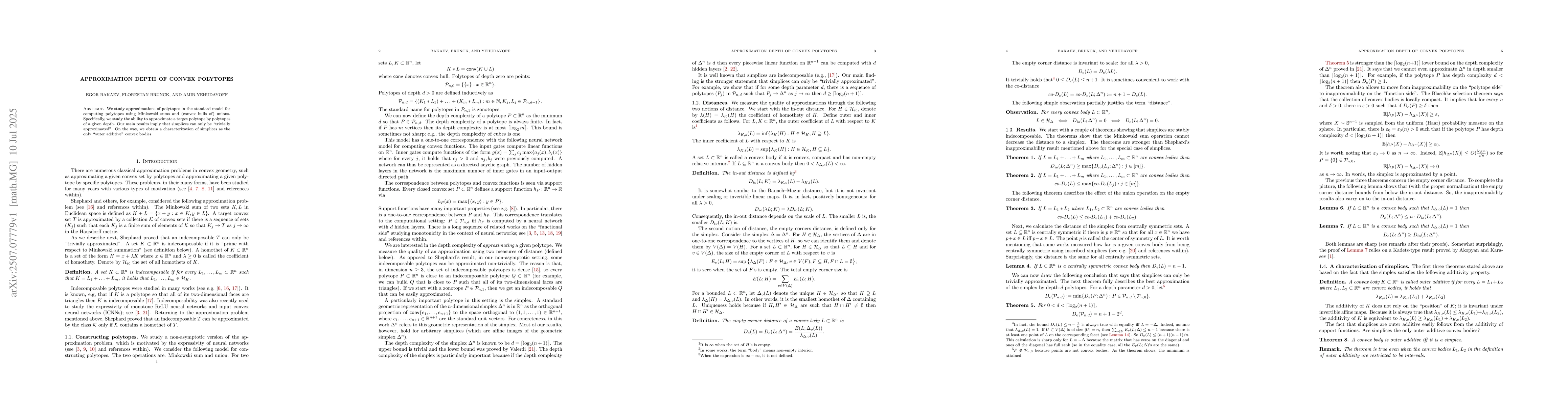 We study approximations of polytopes in the standard model for computing polytopes using Minkowski sums and (convex hulls of) unions. Specifically, we study the ability to approximate a target polytope by polytopes of a given depth. Our main results imply that simplices can only be ``trivially approximated''. On the way, we obtain a characterization of simplices as the only ``outer additive'' convex bodies.