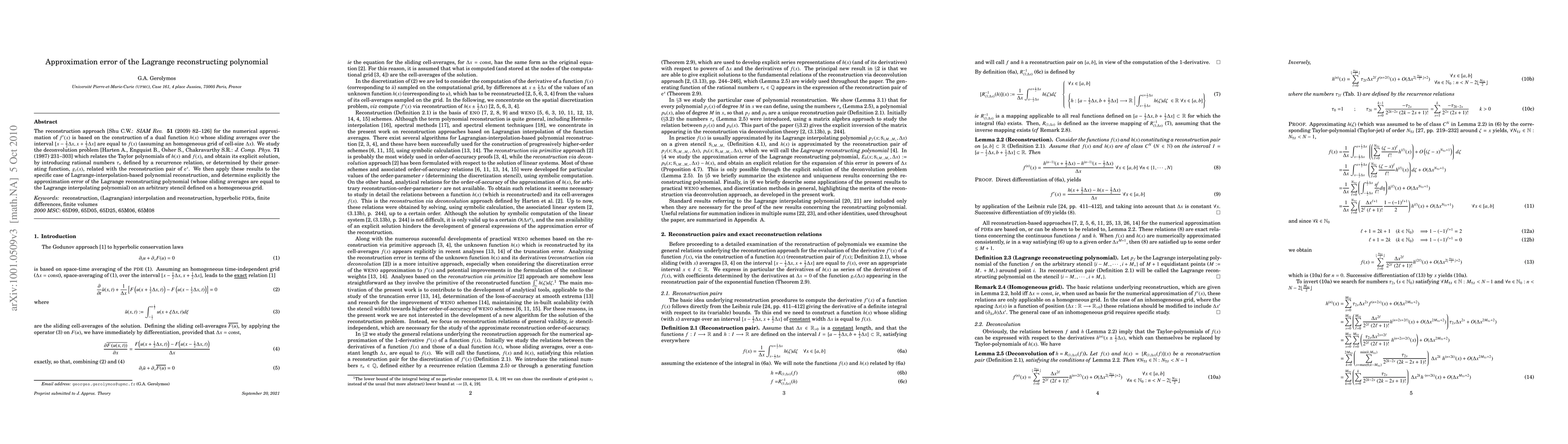 The reconstruction approach [Shu C.W.: {\em SIAM Rev.} {\bf 51} (2009) 82--126] for the numerical approximation of $f'(x)$ is based on the construction of a dual function $h(x)$ whose sliding averages over the interval $[x-\tfrac{1}{2}\Delta x,x+\tfrac{1}{2}\Delta x]$ are equal to $f(x)$ (assuming an homogeneous grid of cell-size $\Delta x$). We study the deconvolution problem [Harten A., Engquist B., Osher S., Chakravarthy S.R.: {\em J. Comp. Phys.} {\bf 71} (1987) 231--303] which relates the Taylor polynomials of $h(x)$ and $f(x)$, and obtain its explicit solution, by introducing rational numbers $\tau_n$ defined by a recurrence relation, or determined by their generating function, $g_\tau(x)$, related with the reconstruction pair of ${\rm e}^x$. We then apply these results to the specific case of Lagrange-interpolation-based polynomial reconstruction, and determine explicitly the approximation error of the Lagrange reconstructing polynomial (whose sliding averages are equal to the Lagrange interpolating polynomial) on an arbitrary stencil defined on a homogeneous grid.
