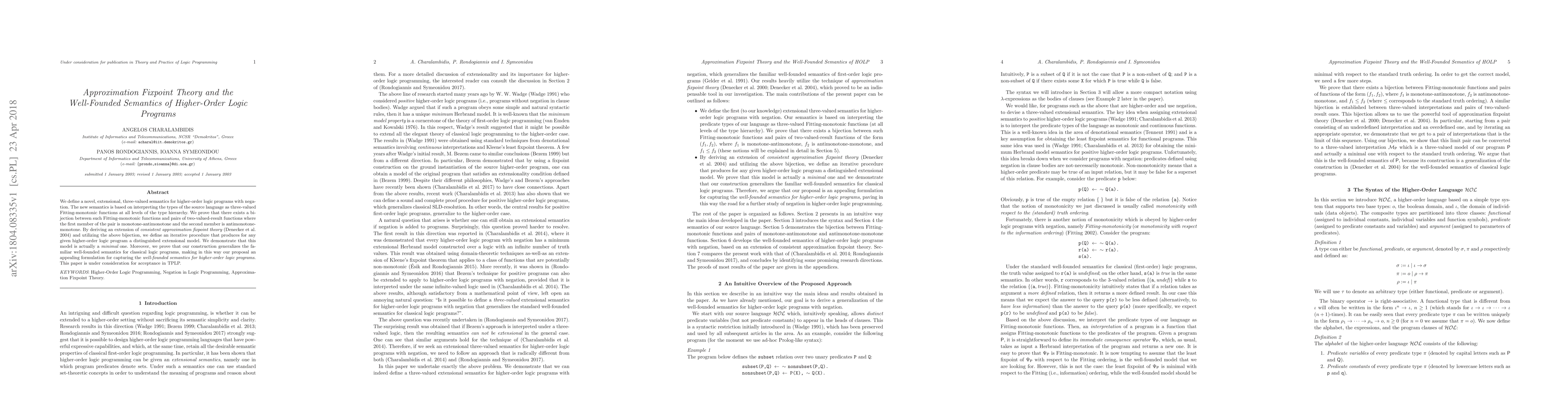 This paper introduces a new three-valued semantics for higher-order logic programs with negation, based on Fitting-monotonic functions. It establishes a bijection to facilitate an iterative fixpoint procedure that yields a minimal extensional model, generalizing the well-founded semantics for classical logic programs.