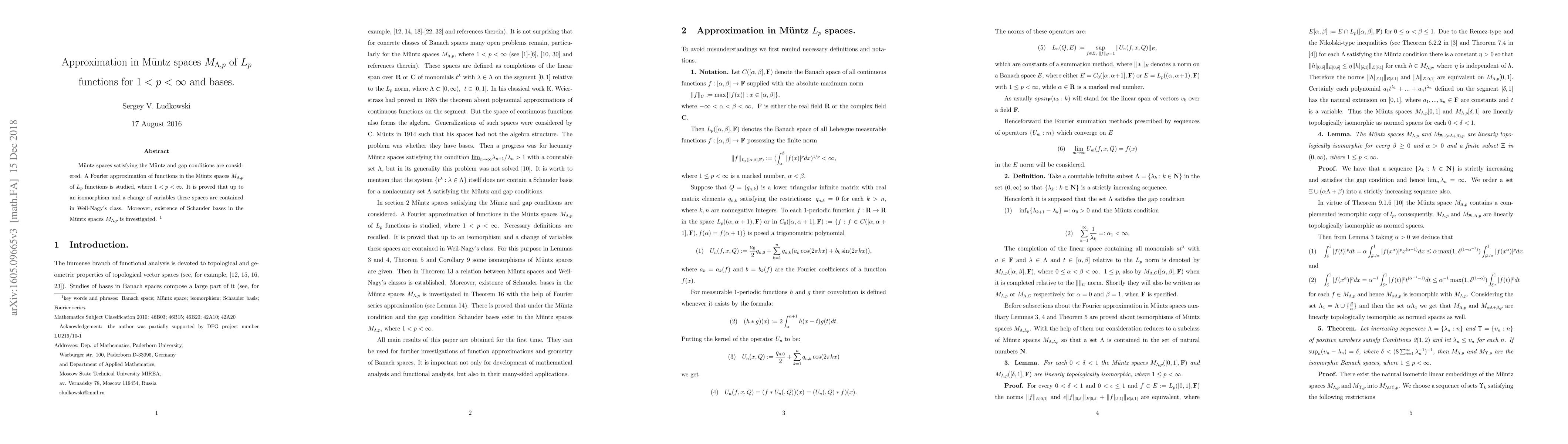 Summary: This paper investigates Fourier approximation in M\"untz spaces $M_{\Lambda ,p}$ for $1<p<\infty$, proving that these spaces are isomorphic to Weil-Nagy's class, and explores the existence of Schauder bases in these spaces.