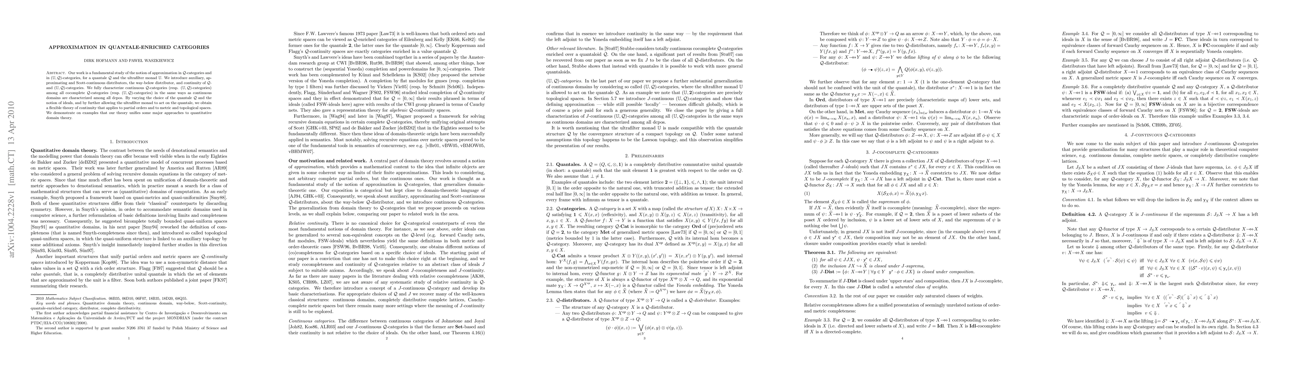 This paper develops a foundational theory of approximation in quantale-enriched categories, introducing various types of distributors and characterizing continuous categories analogous to continuous domains in dcpos. The flexible framework accommodates different quantales and ultrafilter monads, unifying several quantitative domain theory approaches.