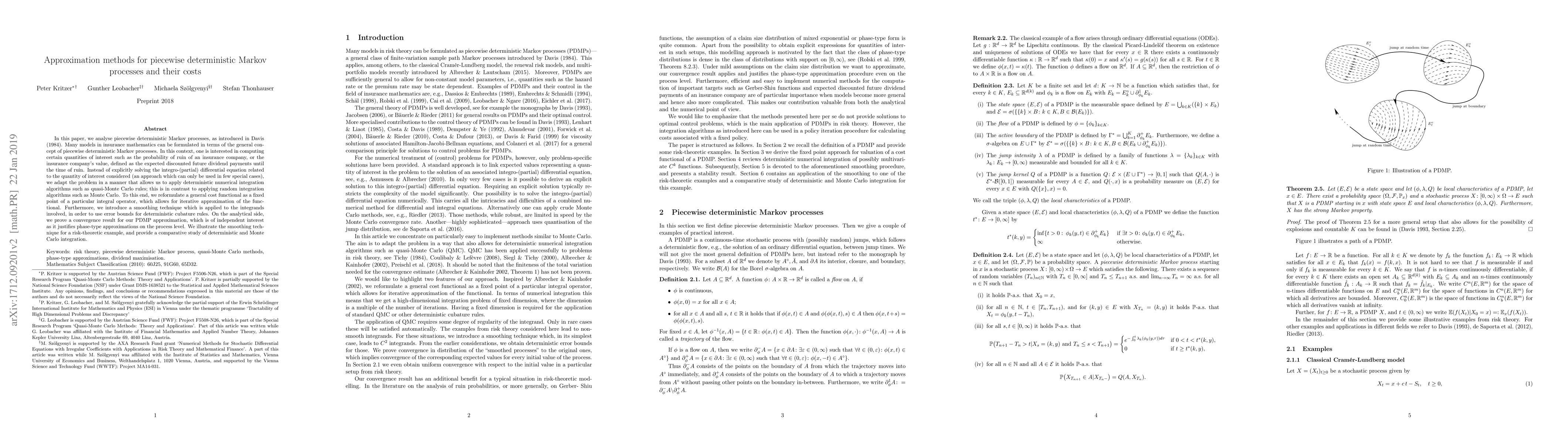In this paper, we analyse piecewise deterministic Markov processes, as introduced in Davis (1984). Many models in insurance mathematics can be formulated in terms of the general concept of piecewise deterministic Markov processes. In this context, one is interested in computing certain quantities of interest such as the probability of ruin of an insurance company, or the insurance company's value, defined as the expected discounted future dividend payments until the time of ruin. Instead of explicitly solving the integro-(partial) differential equation related to the quantity of interest considered (an approach which can only be used in few special cases), we adapt the problem in a manner that allows us to apply deterministic numerical integration algorithms such as quasi-Monte Carlo rules; this is in contrast to applying random integration algorithms such as Monte Carlo. To this end, we reformulate a general cost functional as a fixed point of a particular integral operator, which allows for iterative approximation of the functional. Furthermore, we introduce a smoothing technique which is applied to the integrands involved, in order to use error bounds for deterministic cubature rules. On the analytical side, we prove a convergence result for our PDMP approximation, which is of independent interest as it justifies phase-type approximations on the process level. We illustrate the smoothing technique for a risk-theoretic example, and provide a comparative study of deterministic and Monte Carlo integration.