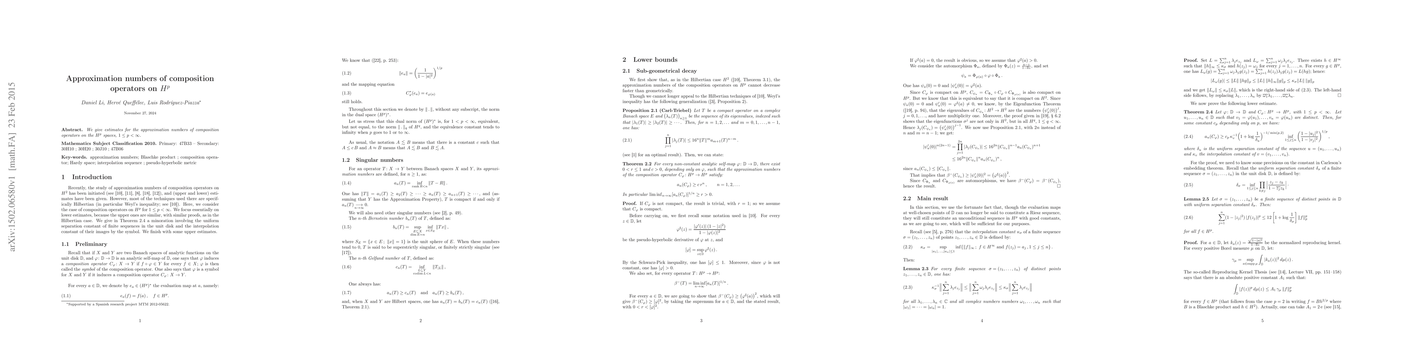 Summary: This paper provides estimates for the approximation numbers of composition operators acting on Hp spaces for 1 ≤ p < ∞, contributing to the understanding of operator theory in Hardy spaces. The results offer insights into the behavior of these operators in terms of their approximation properties.
