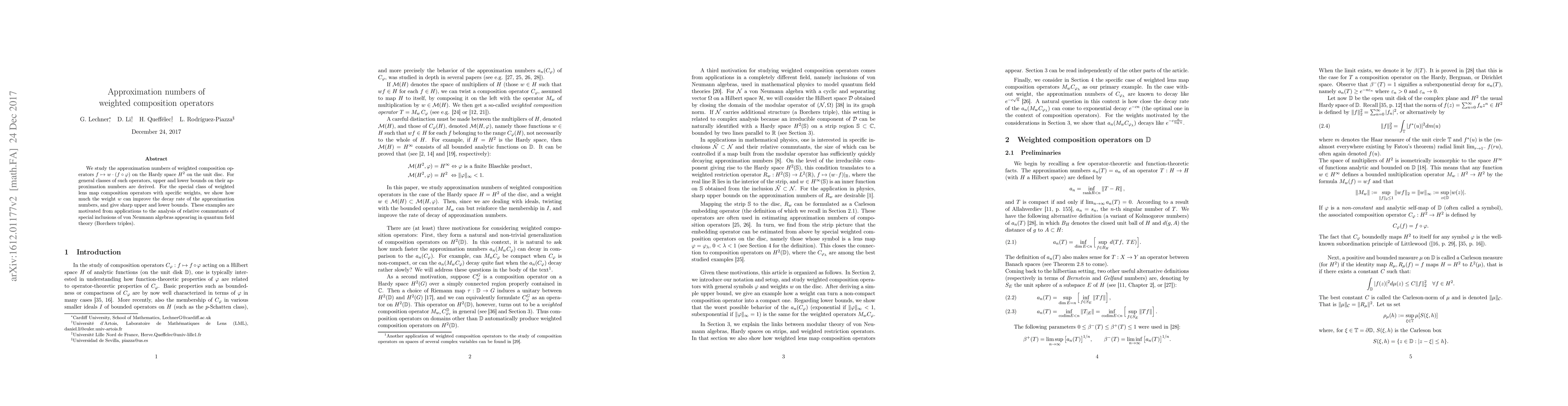 This paper investigates the approximation numbers of weighted composition operators on the Hardy space $H^2$ on the unit disc, deriving upper and lower bounds for general classes. For specific weighted lens map composition operators, it demonstrates how weights enhance the decay rate, providing sharp bounds, and connects these findings to the analysis of relative commutants in quantum field theory.