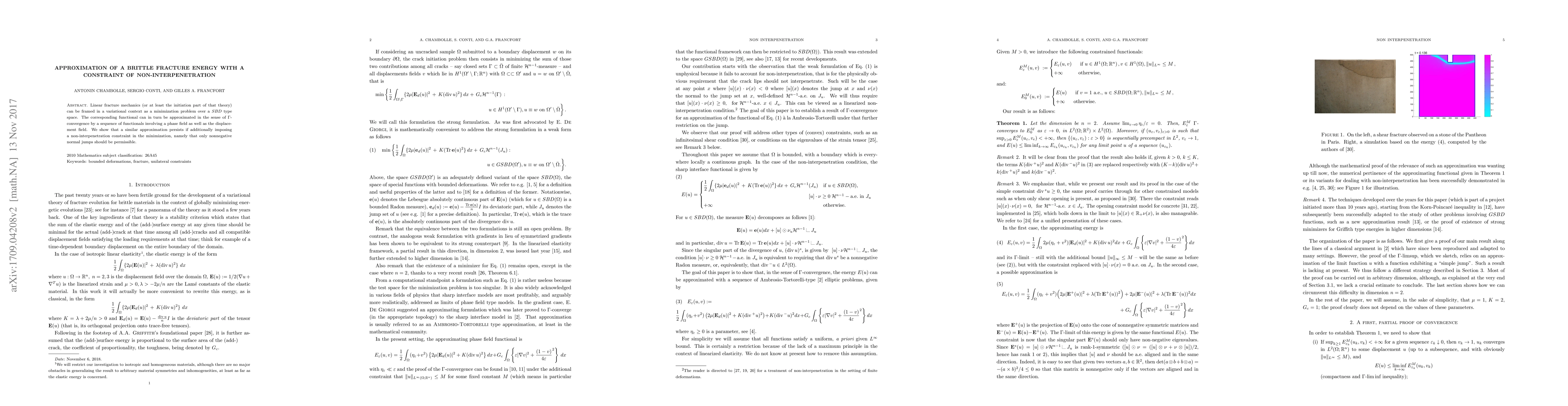 Linear fracture mechanics (or at least the initiation part of that theory) can be framed in a variational context as a minimization problem over a SBD type space. The corresponding functional can in turn be approximated in the sense of $\Gamma$-convergence by a sequence of functionals involving a phase field as well as the displacement field. We show that a similar approximation persists if additionally imposing a non-interpenetration constraint in the minimization, namely that only nonnegative normal jumps should be permissible. 2010 Mathematics subject classification: 26A45