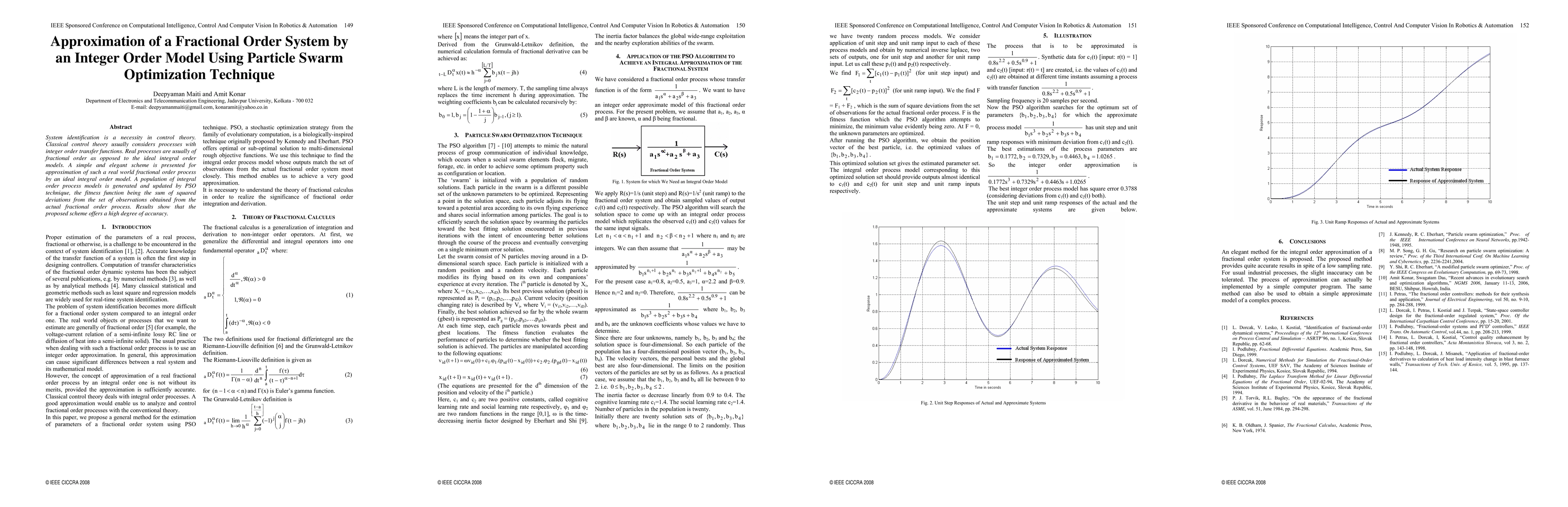 System identification is a necessity in control theory. Classical control theory usually considers processes with integer order transfer functions. Real processes are usually of fractional order as opposed to the ideal integral order models. A simple and elegant scheme is presented for approximation of such a real world fractional order process by an ideal integral order model. A population of integral order process models is generated and updated by PSO technique, the fitness function being the sum of squared deviations from the set of observations obtained from the actual fractional order process. Results show that the proposed scheme offers a high degree of accuracy.