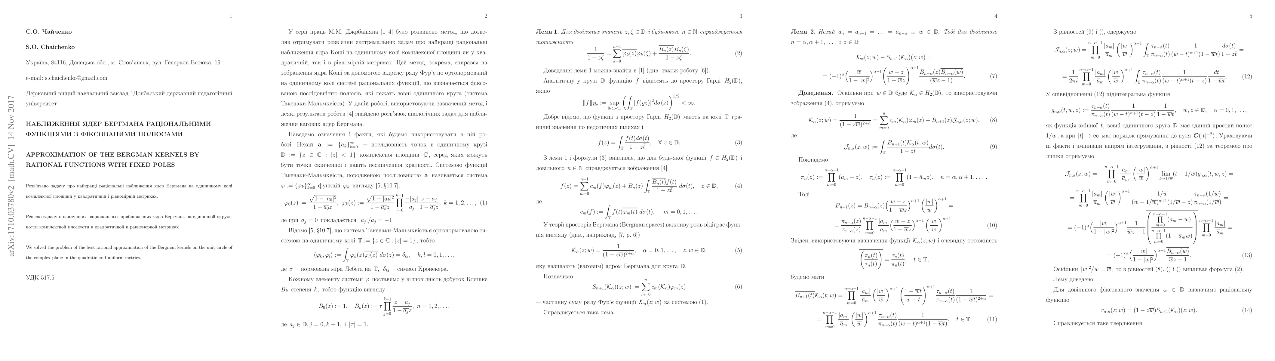 We solved the problem of the best rational approximation of the Bergman kernels on the unit circle of the complex plane in the quadratic and uniform metrics.