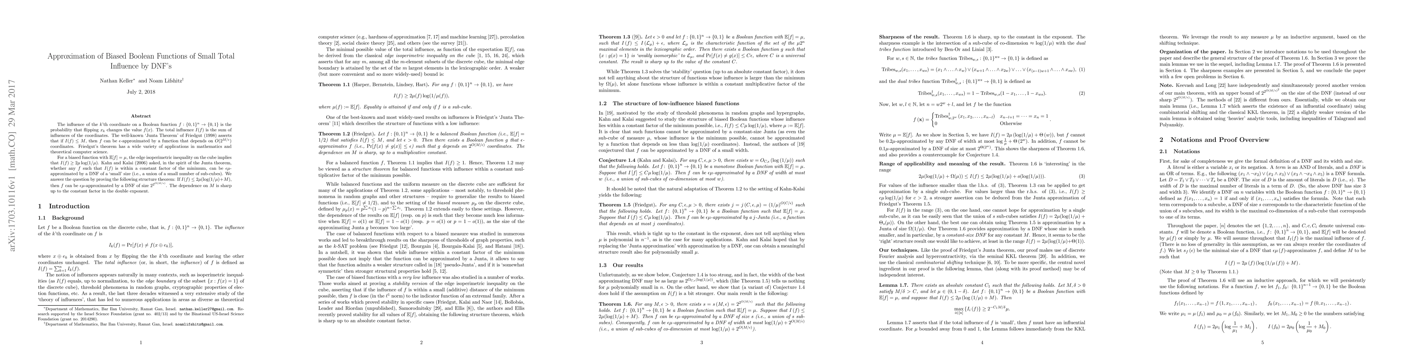This paper investigates the approximation of biased Boolean functions with small total influence by DNFs. It proves that if the total influence of a function is within a constant factor of the minimum, then the function can be approximated by a DNF of size $2^{2^{O(M/\epsilon)}}$, where $M$ is a parameter related to the bias. The result extends the Junta Theorem to biased functions.