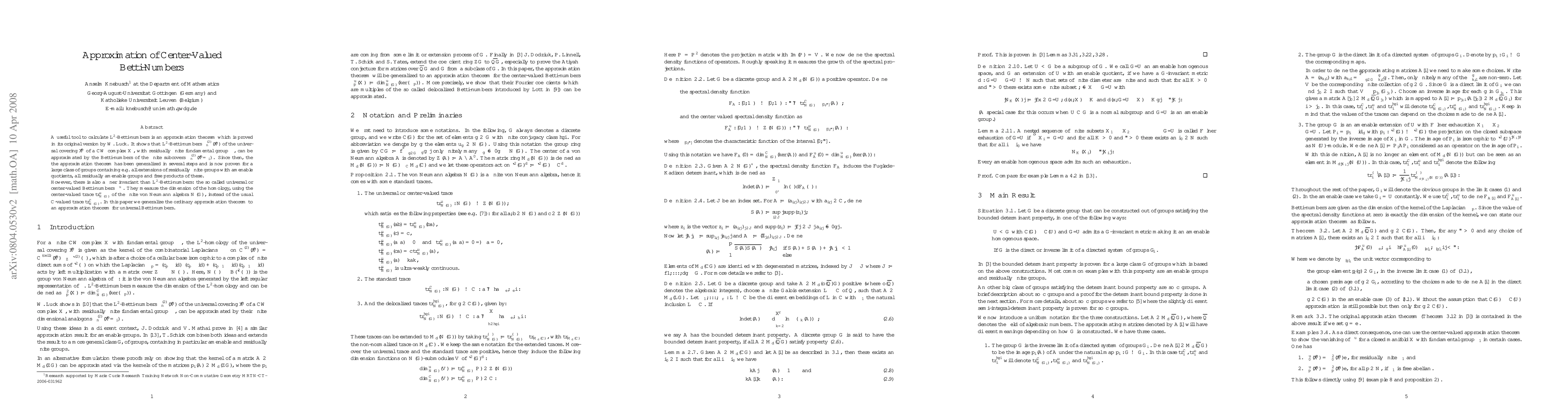 Summary: This paper extends the approximation theorem for L^2-Betti numbers to center-valued Betti-numbers, providing a new framework for understanding these topological invariants.