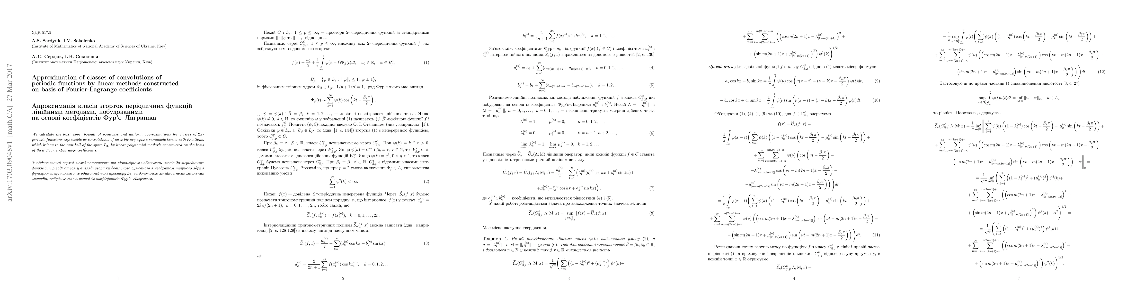 We calculate the least upper bounds of pointwise and uniform approximations for classes of $2\pi$-periodic functions expressible as convolutions of an arbitrary square summable kernel with functions, which belong to the unit ball of the space $L_2$, by linear polynomial methods constructed on the basis of their Fourier-Lagrange coefficients.