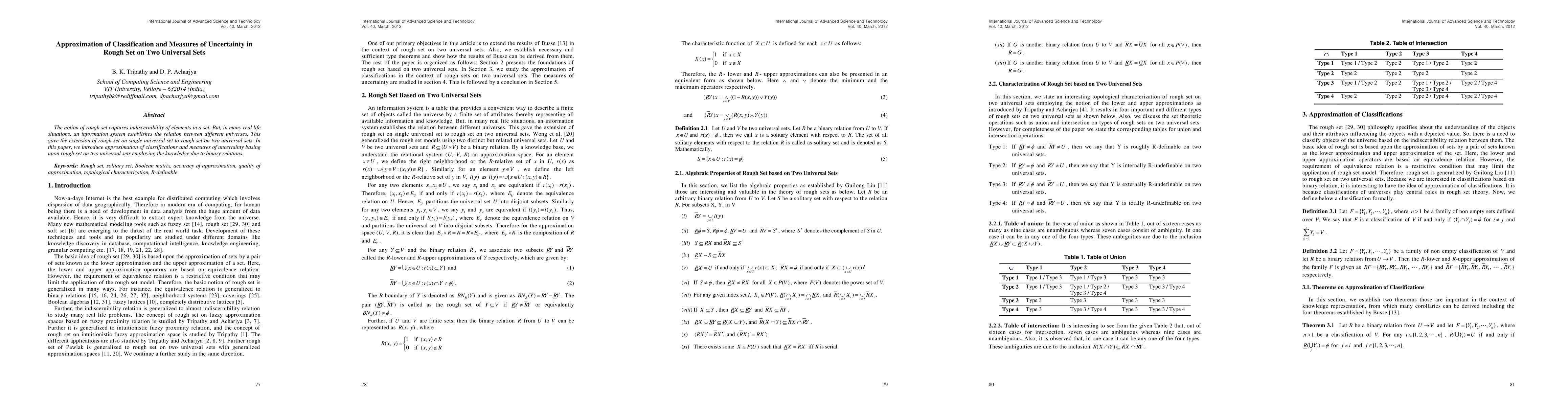 This paper explores the extension of rough set theory to two universal sets, introducing classifications and uncertainty measures based on binary relations. It aims to capture the indiscernibility of elements across different universes.