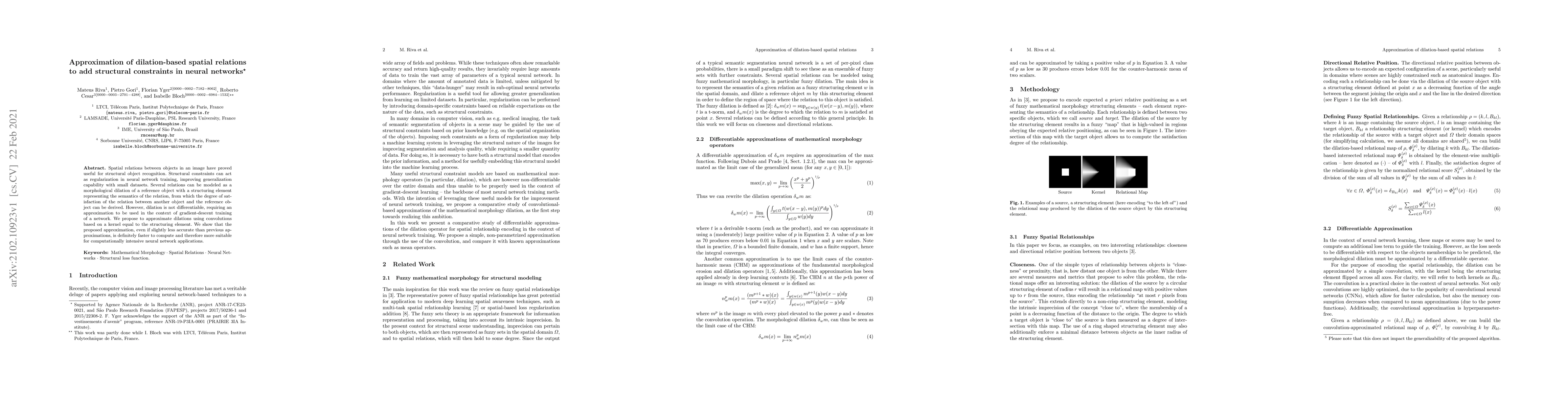 This research introduces a method to approximate dilation-based spatial relations using convolutions, which are differentiable and computationally efficient. The proposed technique, utilizing a kernel equal to the structuring element, offers faster computation than previous approximations, making it suitable for neural network training, especially with limited datasets.