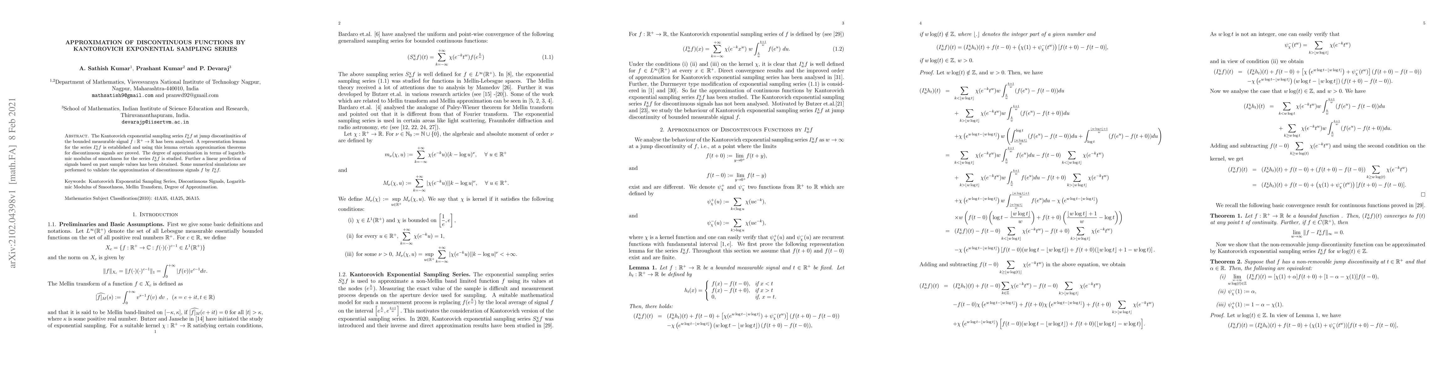 This paper analyzes the Kantorovich exponential sampling series for approximating discontinuous functions, establishing a representation lemma and proving approximation theorems. Numerical simulations validate the method's effectiveness in approximating jump discontinuities.