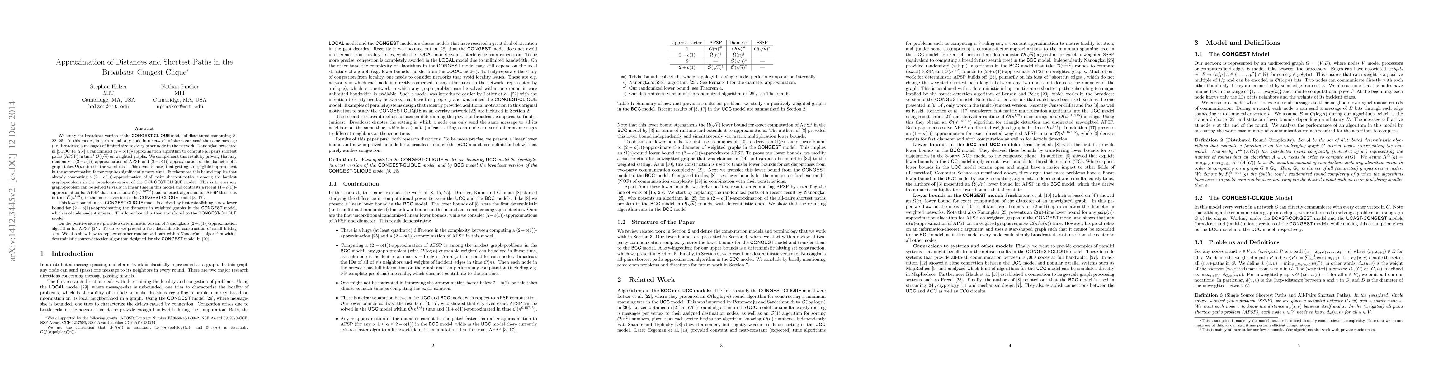 This paper studies the broadcast version of the CONGEST CLIQUE model, focusing on approximating all pairs shortest paths (APSP) and graph diameter. It proves that achieving a $(2-o(1))$-approximation requires $\tilde\Omega(n)$ time, demonstrating the difficulty of improving the approximation factor. On the positive side, it provides a deterministic version of Nanongkai's $(2+o(1))$-approximation algorithm for APSP by using a fast deterministic construction of small hitting sets.
