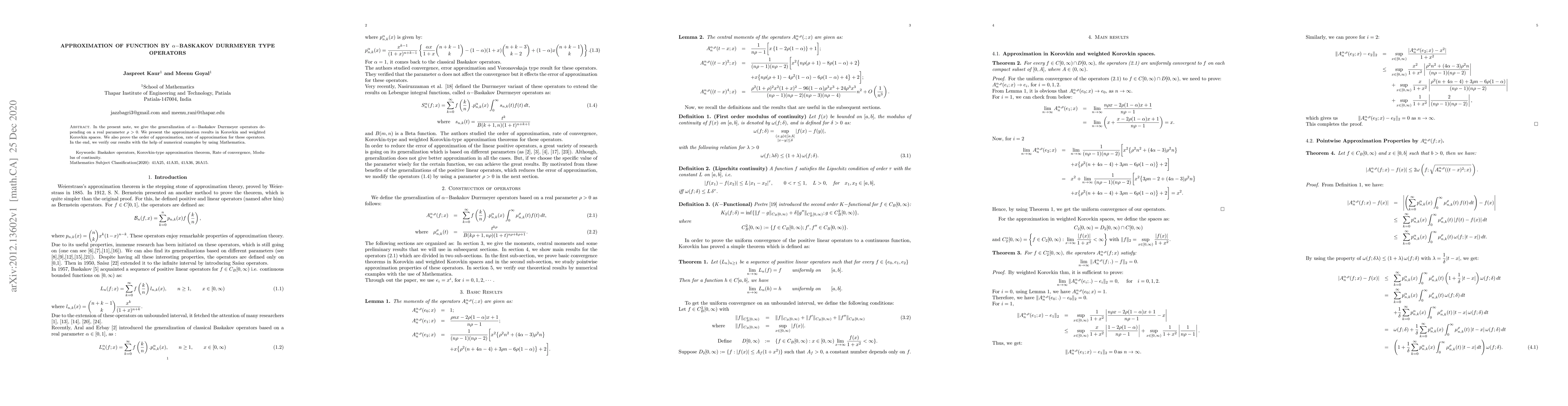 This paper generalizes $\alpha-$Baskakov Durrmeyer operators with a parameter $\rho$ and examines their approximation properties in Korovkin and weighted Korovkin spaces, proving the order and rate of approximation. Numerical examples are provided to verify the theoretical results.