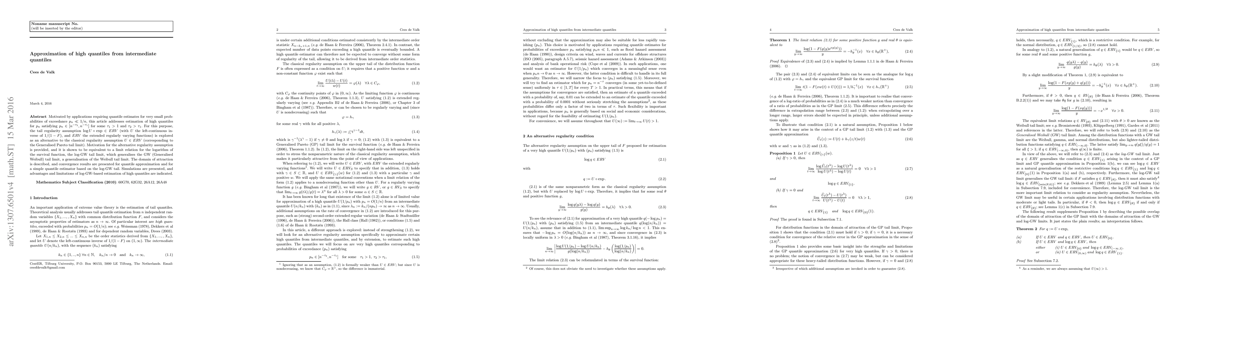 This paper proposes an alternative regularity assumption, the log-GW tail limit, to estimate high quantiles for very small probabilities of exceedance, generalizing the GW tail limit. Simulation results highlight the advantages and limitations of this approach for quantile estimation.