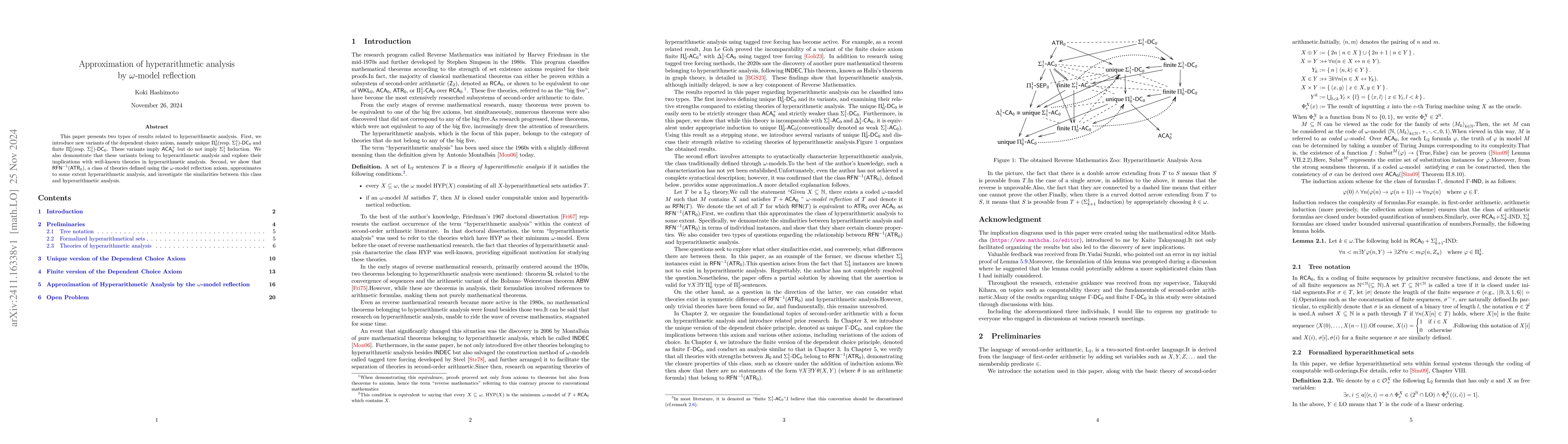 This paper presents two types of results related to hyperarithmetic analysis. First, we introduce new variants of the dependent choice axiom, namely $\mathrm{unique}~\Pi^1_0(\mathrm{resp.}~\Sigma^1_1)\text{-}\mathsf{DC}_0$ and $\mathrm{finite}~\Pi^1_0(\mathrm{resp.}~\Sigma^1_1)\text{-}\mathsf{DC}_0$. These variants imply $\mathsf{ACA}_0^+$ but do not imply $\Sigma^1_1\mathrm{~Induction}$. We also demonstrate that these variants belong to hyperarithmetic analysis and explore their implications with well-known theories in hyperarithmetic analysis. Second, we show that $\mathsf{RFN}^{-1}(\mathsf{ATR}_0)$, a class of theories defined using the $\omega$-model reflection axiom, approximates to some extent hyperarithmetic analysis, and investigate the similarities between this class and hyperarithmetic analysis.