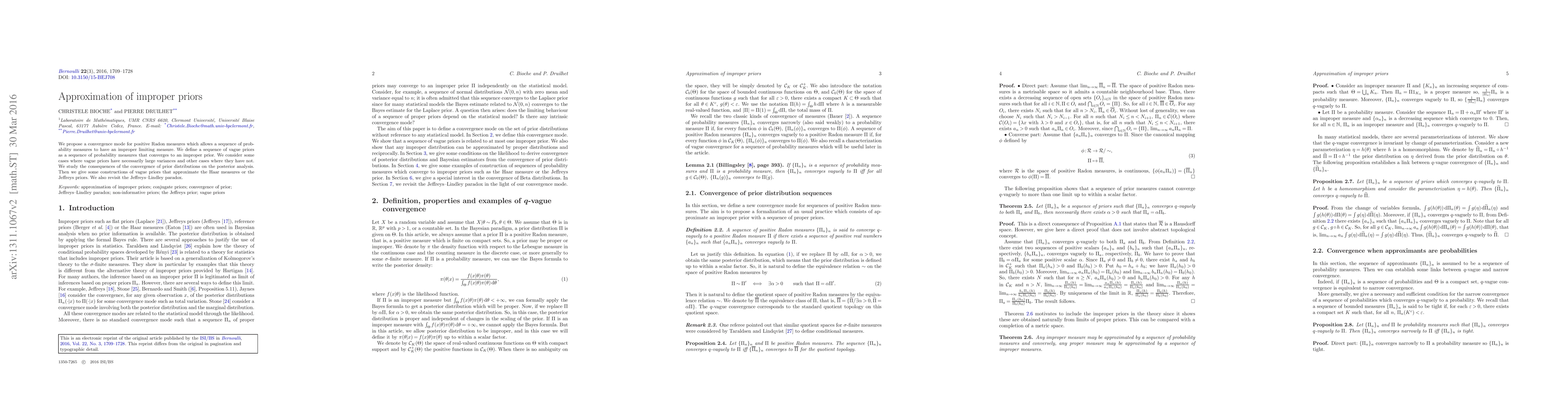 We propose a convergence mode for positive Radon measures which allows a sequence of probability measures to have an improper limiting measure. We define a sequence of vague priors as a sequence of probability measures that converges to an improper prior. We consider some cases where vague priors have necessarily large variances and other cases where they have not. We study the consequences of the convergence of prior distributions on the posterior analysis. Then we give some constructions of vague priors that approximate the Haar measures or the Jeffreys priors. We also revisit the Jeffreys-Lindley paradox.
